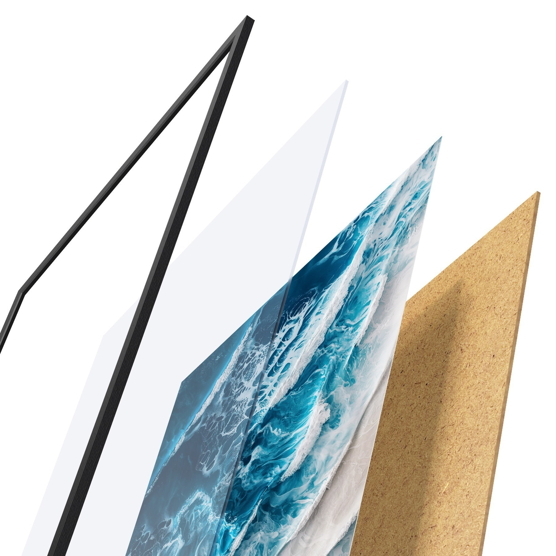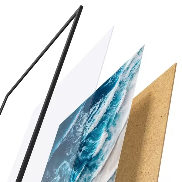 L’affiche encadrée est composée d’un cadre, d’un plexiglas, d’une image imprimée et d’un support en aggloméré. Elle est prête à être accrochée au mur grâce aux fixations situées à l’arrière.
