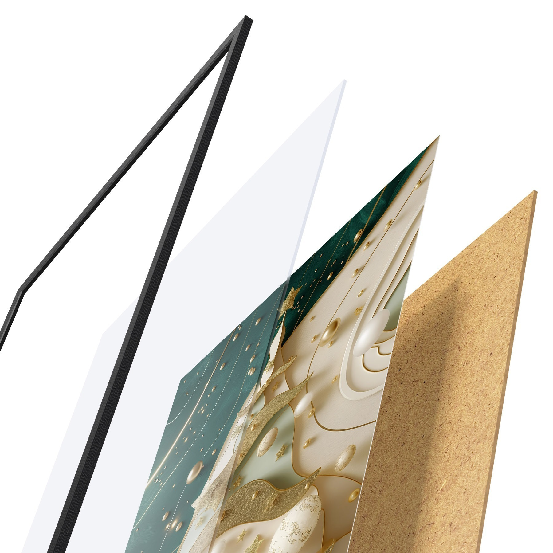 L’affiche encadrée est composée d’un cadre, d’un plexiglas, d’une image imprimée et d’un support en aggloméré. Elle est prête à être accrochée au mur grâce aux fixations situées à l’arrière.