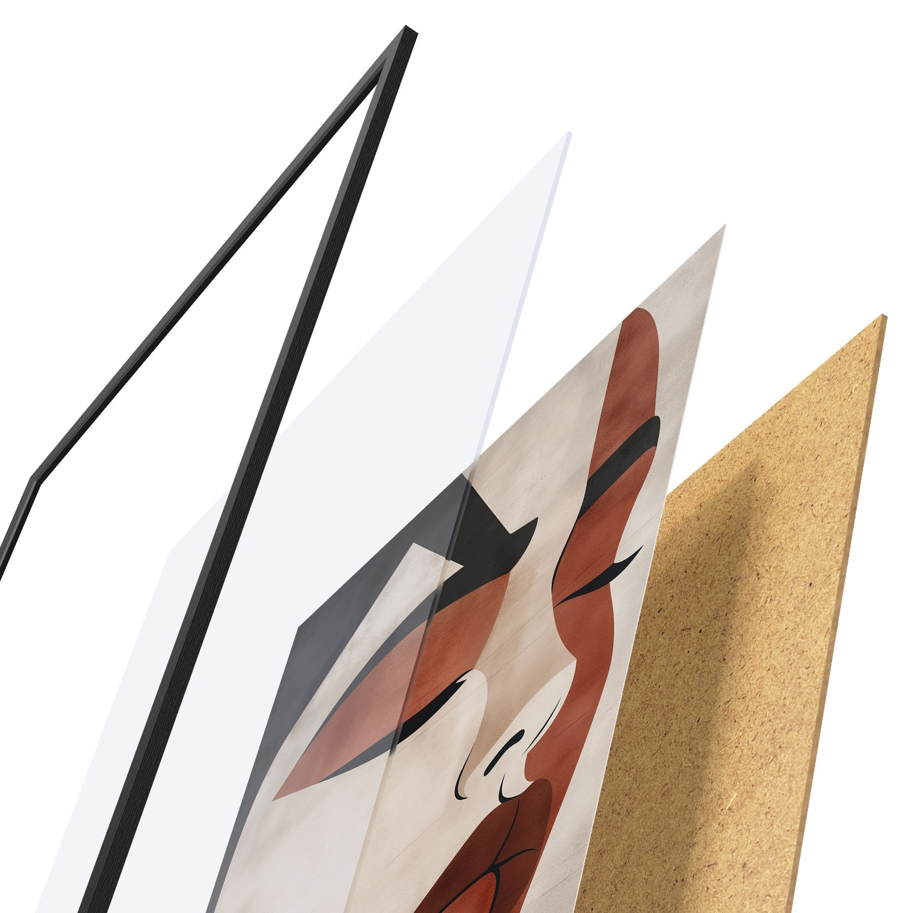 L’affiche encadrée est composée d’un cadre, d’un plexiglas, d’une image imprimée et d’un support en aggloméré. Elle est prête à être accrochée au mur grâce aux fixations situées à l’arrière.