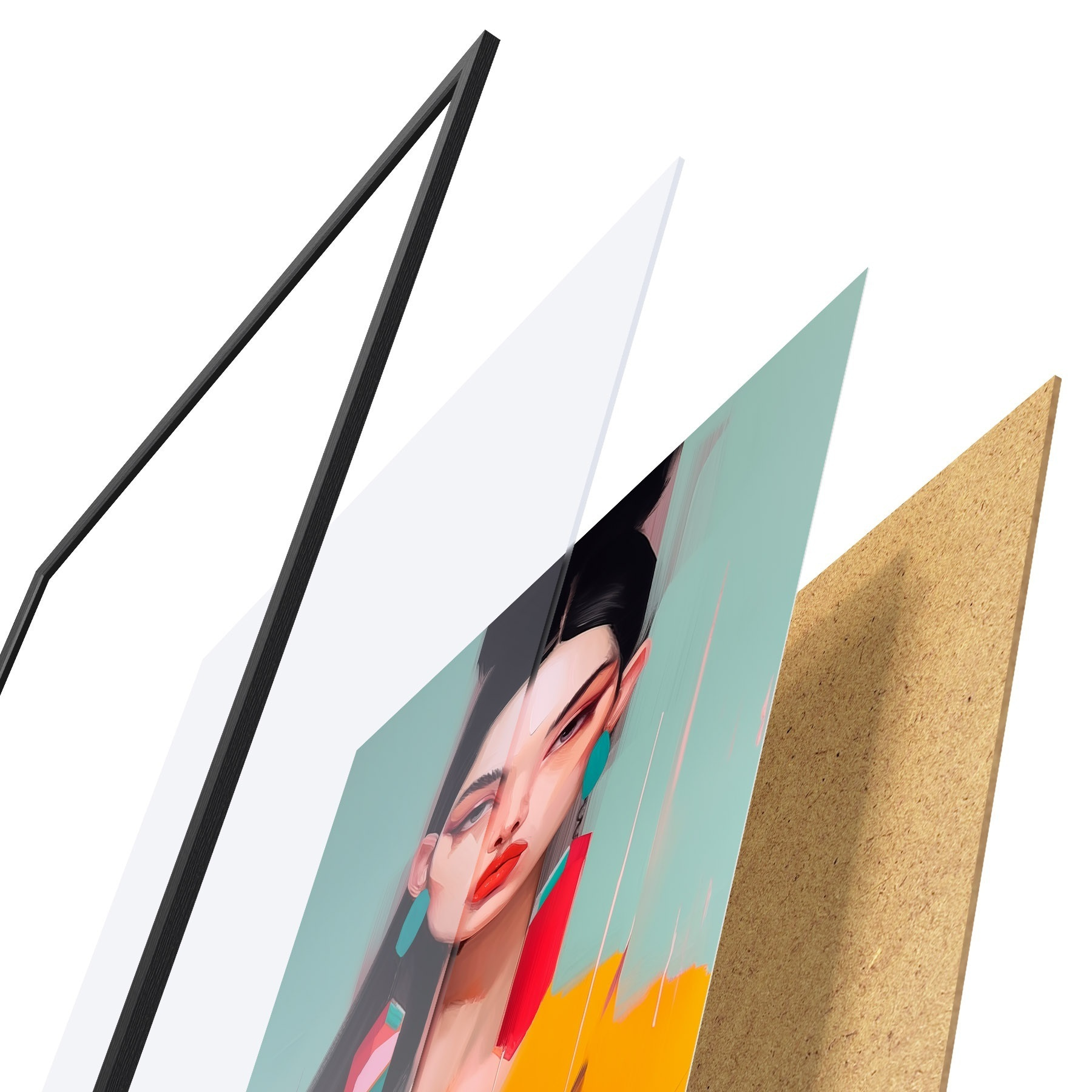 L’affiche encadrée est composée d’un cadre, d’un plexiglas, d’une image imprimée et d’un support en aggloméré. Elle est prête à être accrochée au mur grâce aux fixations situées à l’arrière.