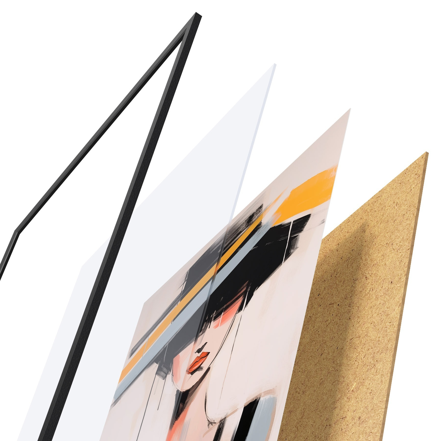 L’affiche encadrée est composée d’un cadre, d’un plexiglas, d’une image imprimée et d’un support en aggloméré. Elle est prête à être accrochée au mur grâce aux fixations situées à l’arrière.