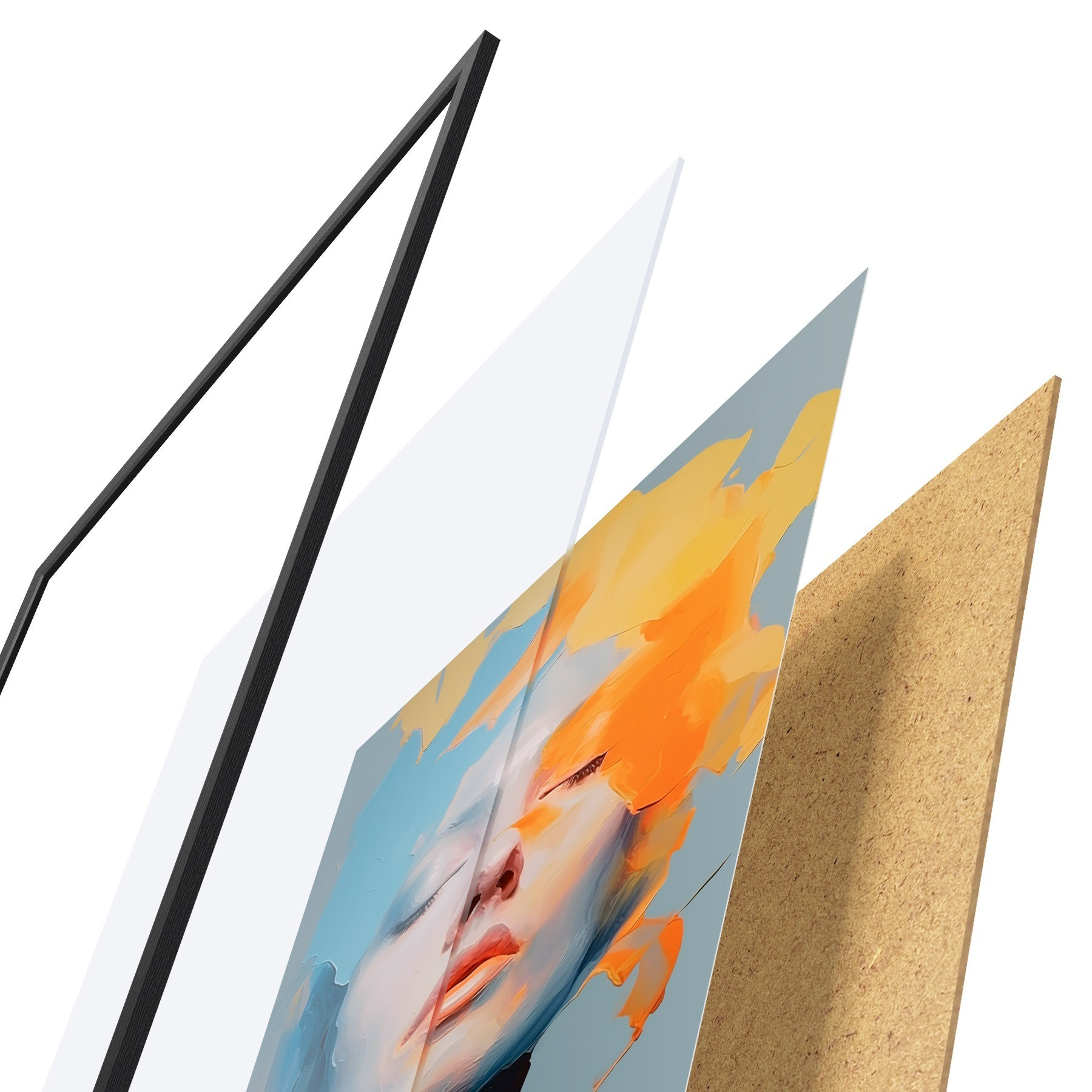 L’affiche encadrée est composée d’un cadre, d’un plexiglas, d’une image imprimée et d’un support en aggloméré. Elle est prête à être accrochée au mur grâce aux fixations situées à l’arrière.