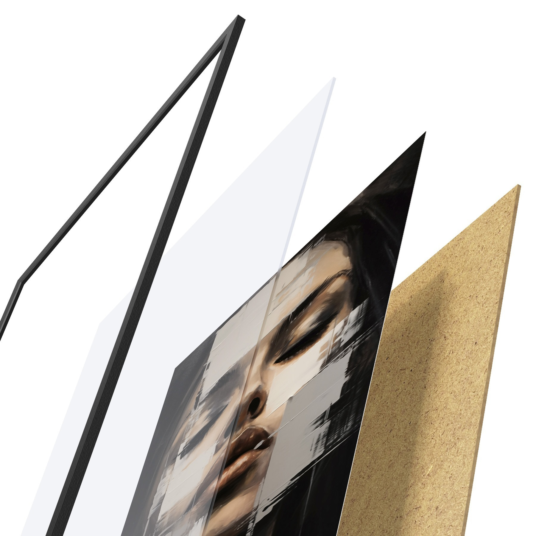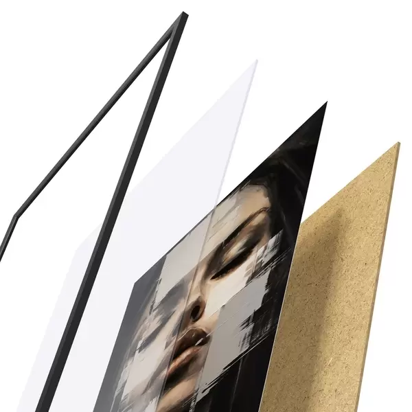 L’affiche encadrée est composée d’un cadre, d’un plexiglas, d’une image imprimée et d’un support en aggloméré. Elle est prête à être accrochée au mur grâce aux fixations situées à l’arrière.