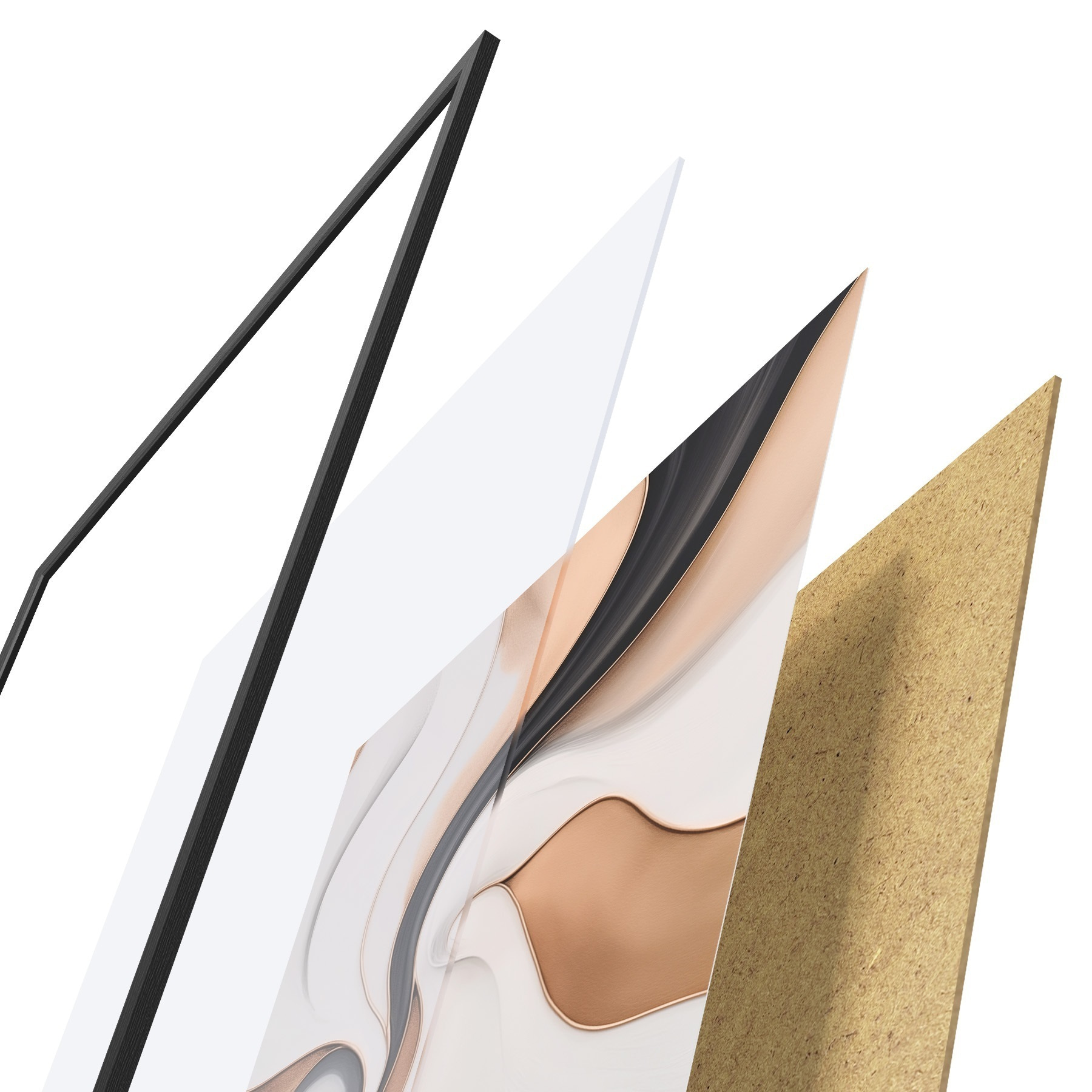 L’affiche encadrée est composée d’un cadre, d’un plexiglas, d’une image imprimée et d’un support en aggloméré. Elle est prête à être accrochée au mur grâce aux fixations situées à l’arrière.