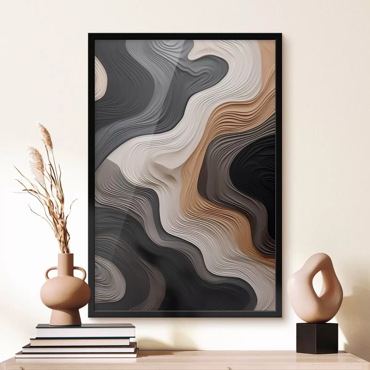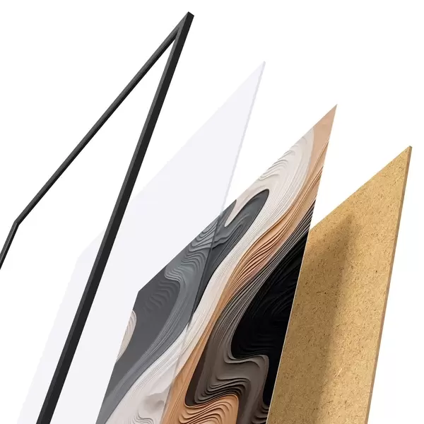L’affiche encadrée est composée d’un cadre, d’un plexiglas, d’une image imprimée et d’un support en aggloméré. Elle est prête à être accrochée au mur grâce aux fixations situées à l’arrière.