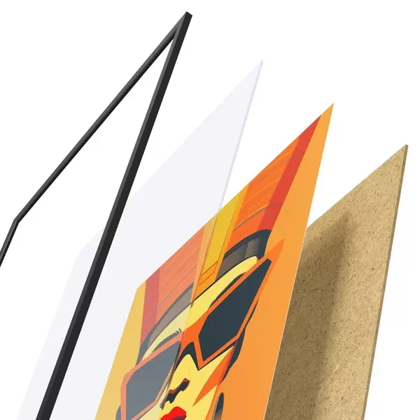 L’affiche encadrée est composée d’un cadre, d’un plexiglas, d’une image imprimée et d’un support en aggloméré. Elle est prête à être accrochée au mur grâce aux fixations situées à l’arrière.