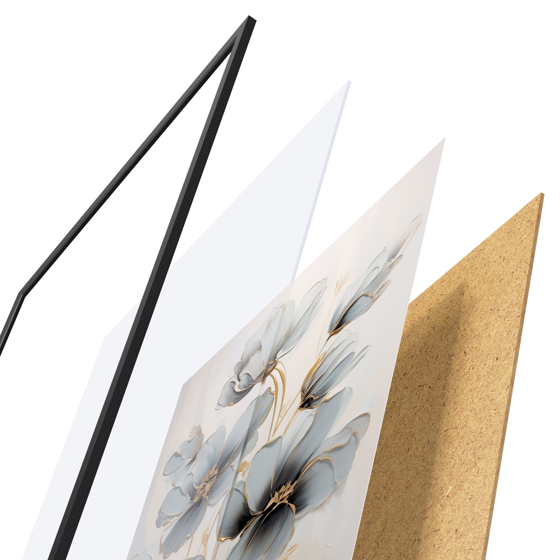 L’affiche encadrée est composée d’un cadre, d’un plexiglas, d’une image imprimée et d’un support en aggloméré. Elle est prête à être accrochée au mur grâce aux fixations situées à l’arrière.