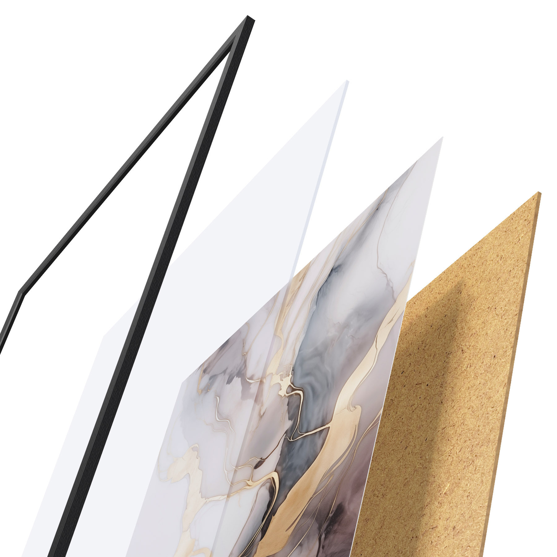 L’affiche encadrée est composée d’un cadre, d’un plexiglas, d’une image imprimée et d’un support en aggloméré. Elle est prête à être accrochée au mur grâce aux fixations situées à l’arrière.
