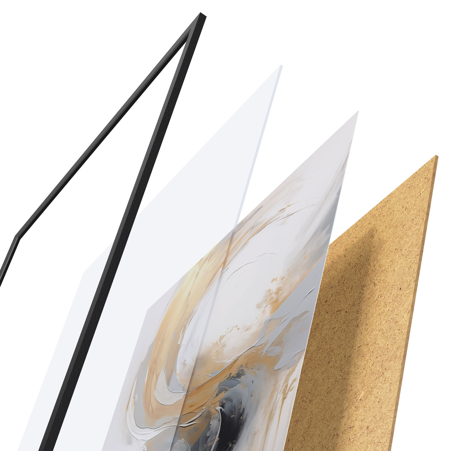 L’affiche encadrée est composée d’un cadre, d’un plexiglas, d’une image imprimée et d’un support en aggloméré. Elle est prête à être accrochée au mur grâce aux fixations situées à l’arrière.