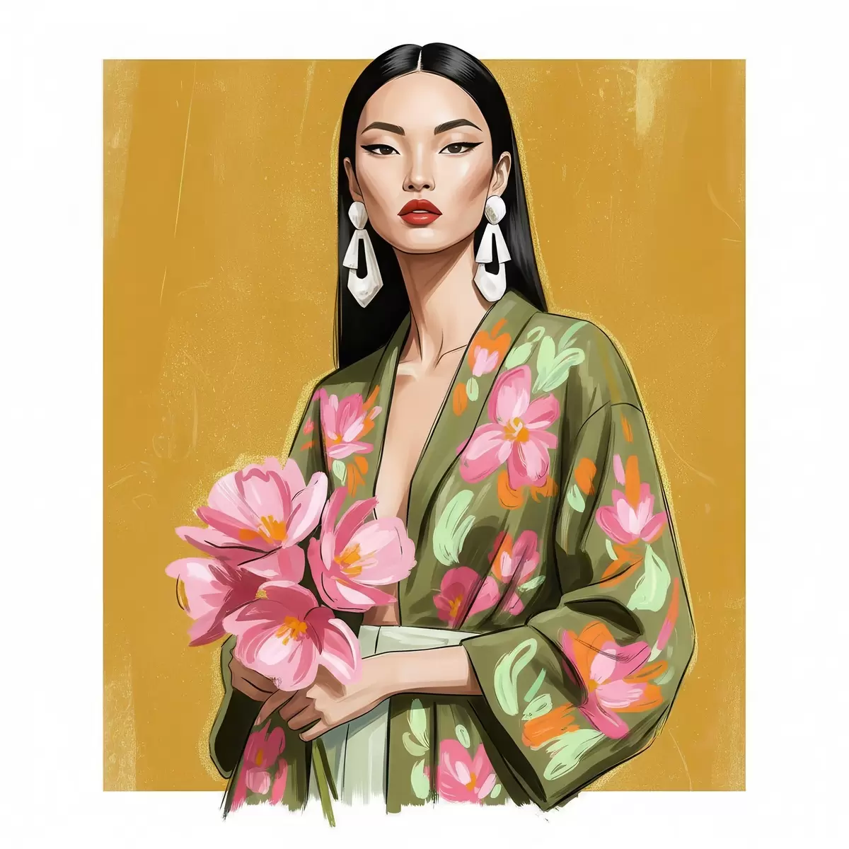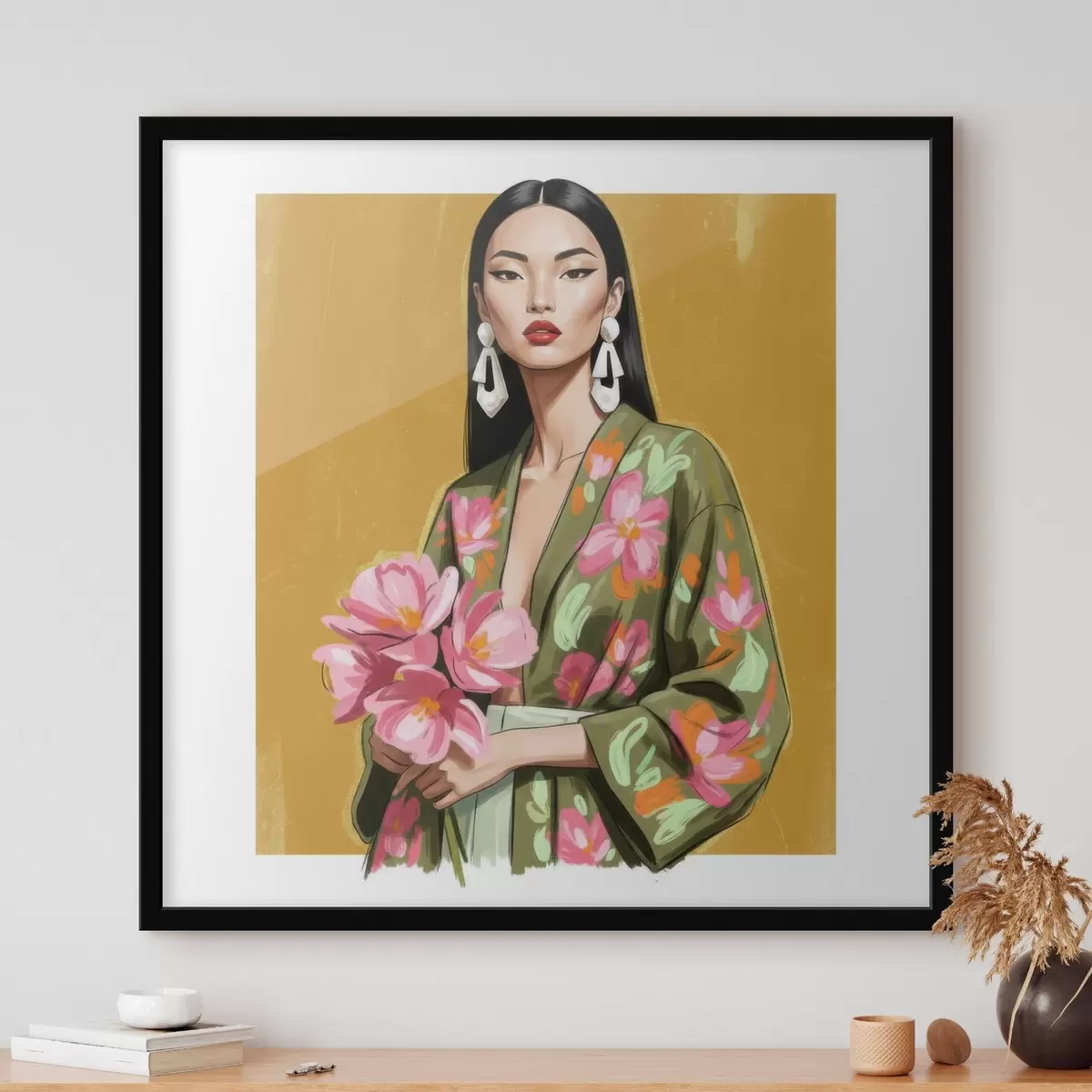 Poster Fille avec un bouquet de fleurs Nr f46850