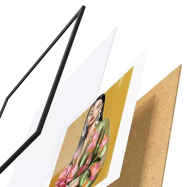 L’affiche encadrée est composée d’un cadre, d’un plexiglas, d’une image imprimée et d’un support en aggloméré. Elle est prête à être accrochée au mur grâce aux fixations situées à l’arrière.