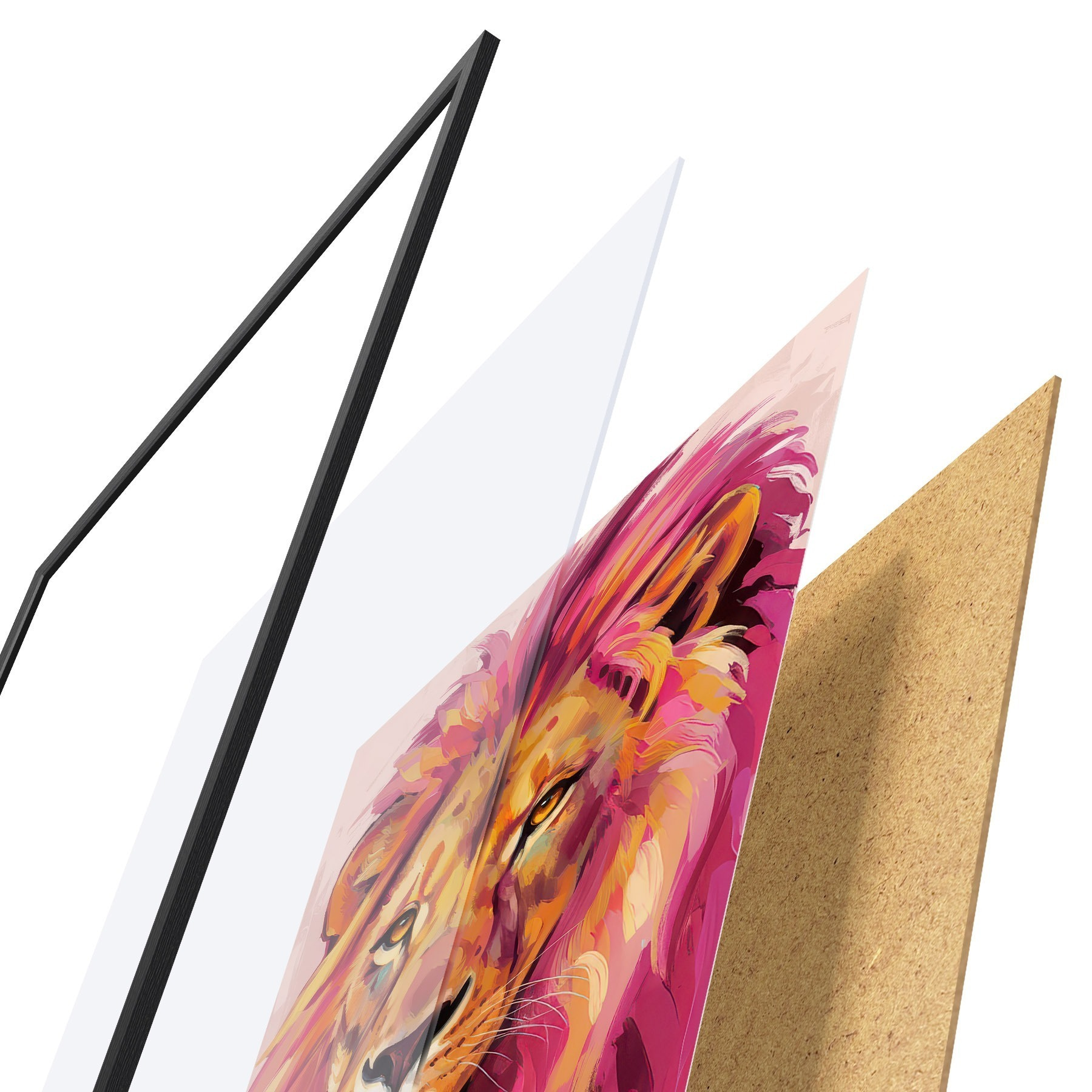 L’affiche encadrée est composée d’un cadre, d’un plexiglas, d’une image imprimée et d’un support en aggloméré. Elle est prête à être accrochée au mur grâce aux fixations situées à l’arrière.