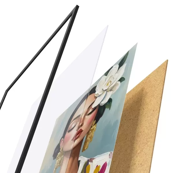 L’affiche encadrée est composée d’un cadre, d’un plexiglas, d’une image imprimée et d’un support en aggloméré. Elle est prête à être accrochée au mur grâce aux fixations situées à l’arrière.