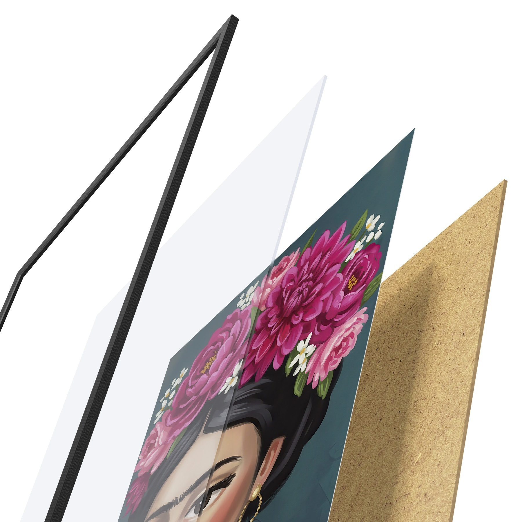 L’affiche encadrée est composée d’un cadre, d’un plexiglas, d’une image imprimée et d’un support en aggloméré. Elle est prête à être accrochée au mur grâce aux fixations situées à l’arrière.