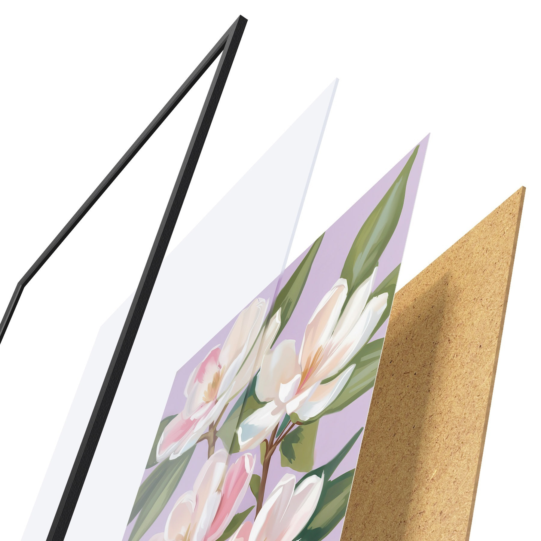 L’affiche encadrée est composée d’un cadre, d’un plexiglas, d’une image imprimée et d’un support en aggloméré. Elle est prête à être accrochée au mur grâce aux fixations situées à l’arrière.