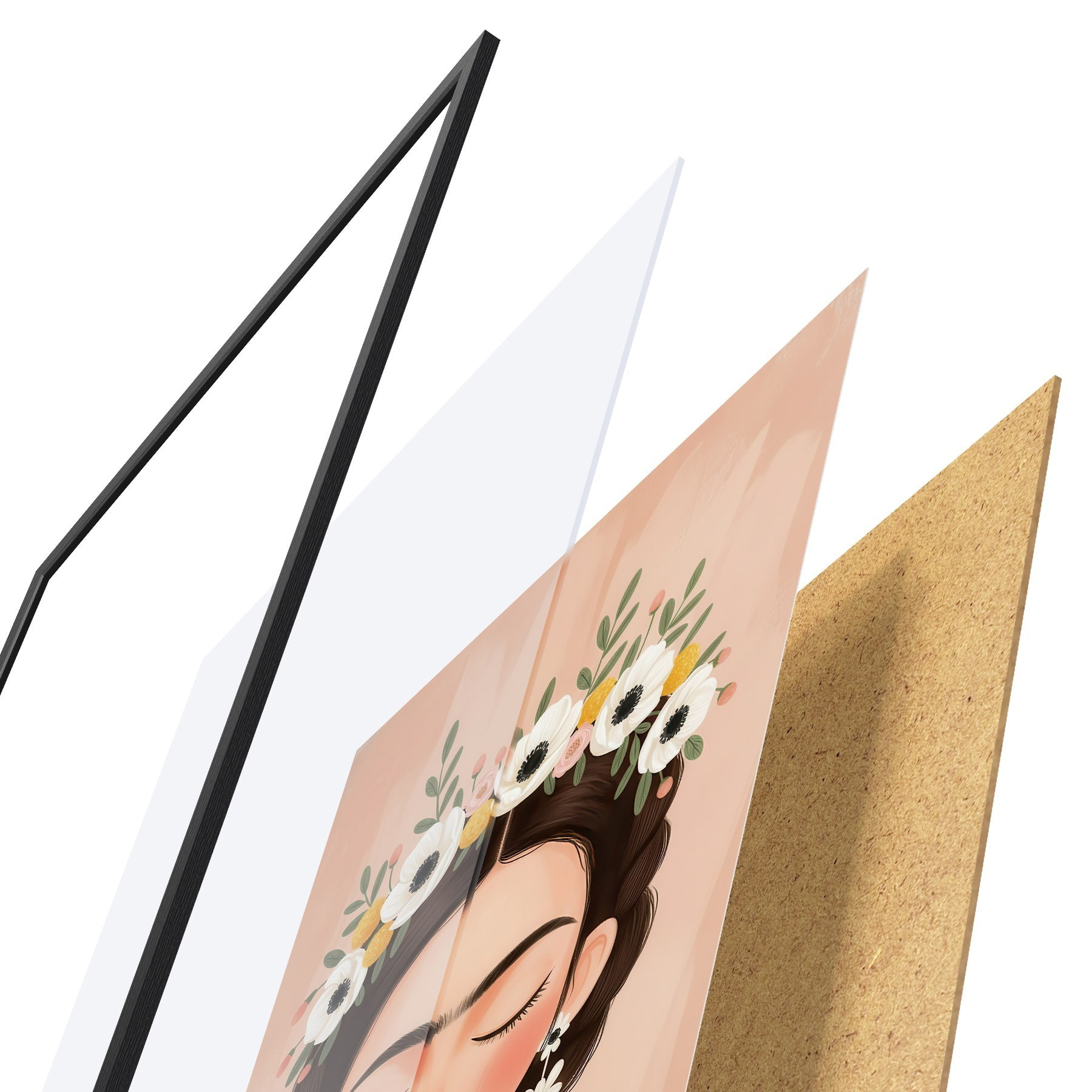 L’affiche encadrée est composée d’un cadre, d’un plexiglas, d’une image imprimée et d’un support en aggloméré. Elle est prête à être accrochée au mur grâce aux fixations situées à l’arrière.
