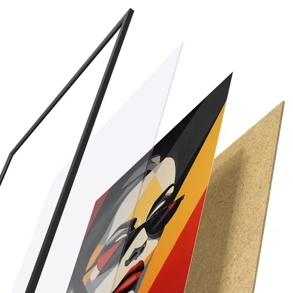 L’affiche encadrée est composée d’un cadre, d’un plexiglas, d’une image imprimée et d’un support en aggloméré. Elle est prête à être accrochée au mur grâce aux fixations situées à l’arrière.
