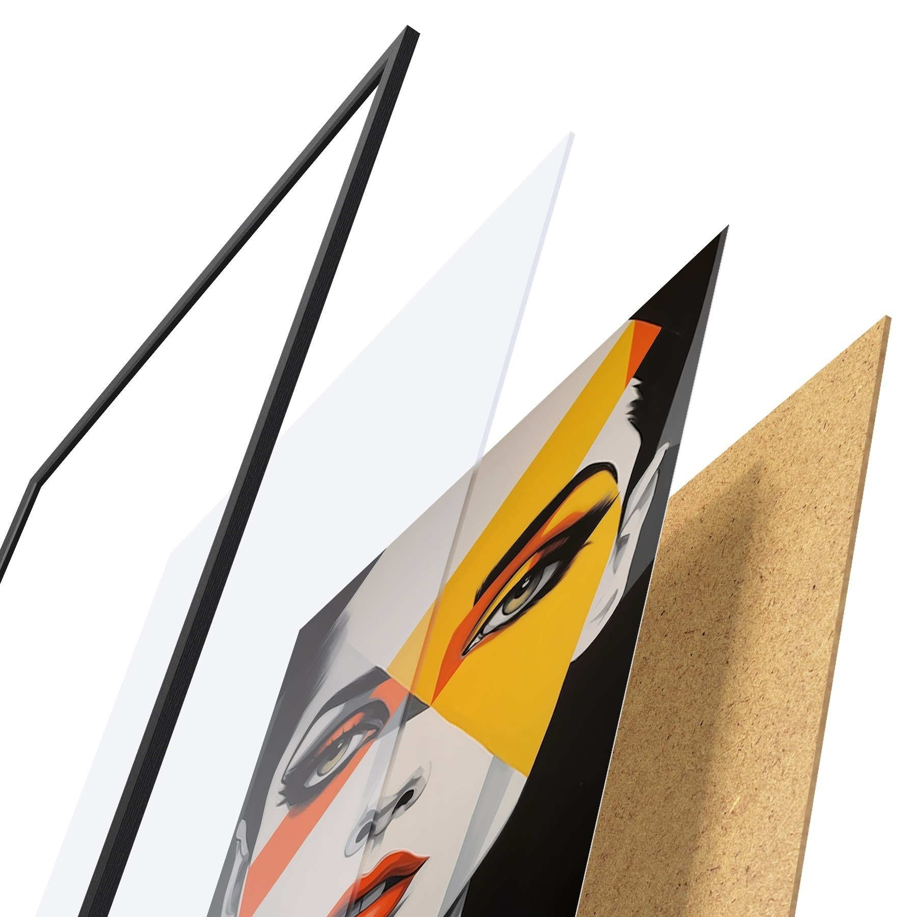 L’affiche encadrée est composée d’un cadre, d’un plexiglas, d’une image imprimée et d’un support en aggloméré. Elle est prête à être accrochée au mur grâce aux fixations situées à l’arrière.