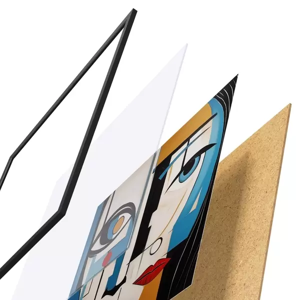 L’affiche encadrée est composée d’un cadre, d’un plexiglas, d’une image imprimée et d’un support en aggloméré. Elle est prête à être accrochée au mur grâce aux fixations situées à l’arrière.