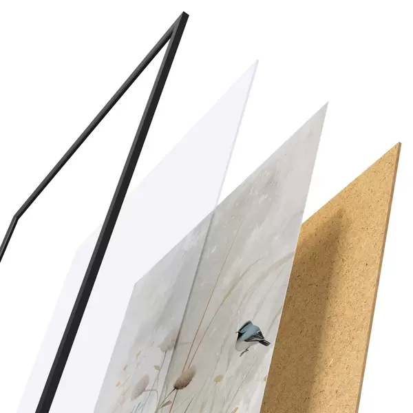 L’affiche encadrée est composée d’un cadre, d’un plexiglas, d’une image imprimée et d’un support en aggloméré. Elle est prête à être accrochée au mur grâce aux fixations situées à l’arrière.