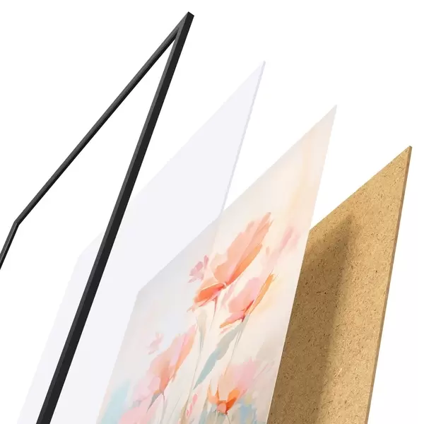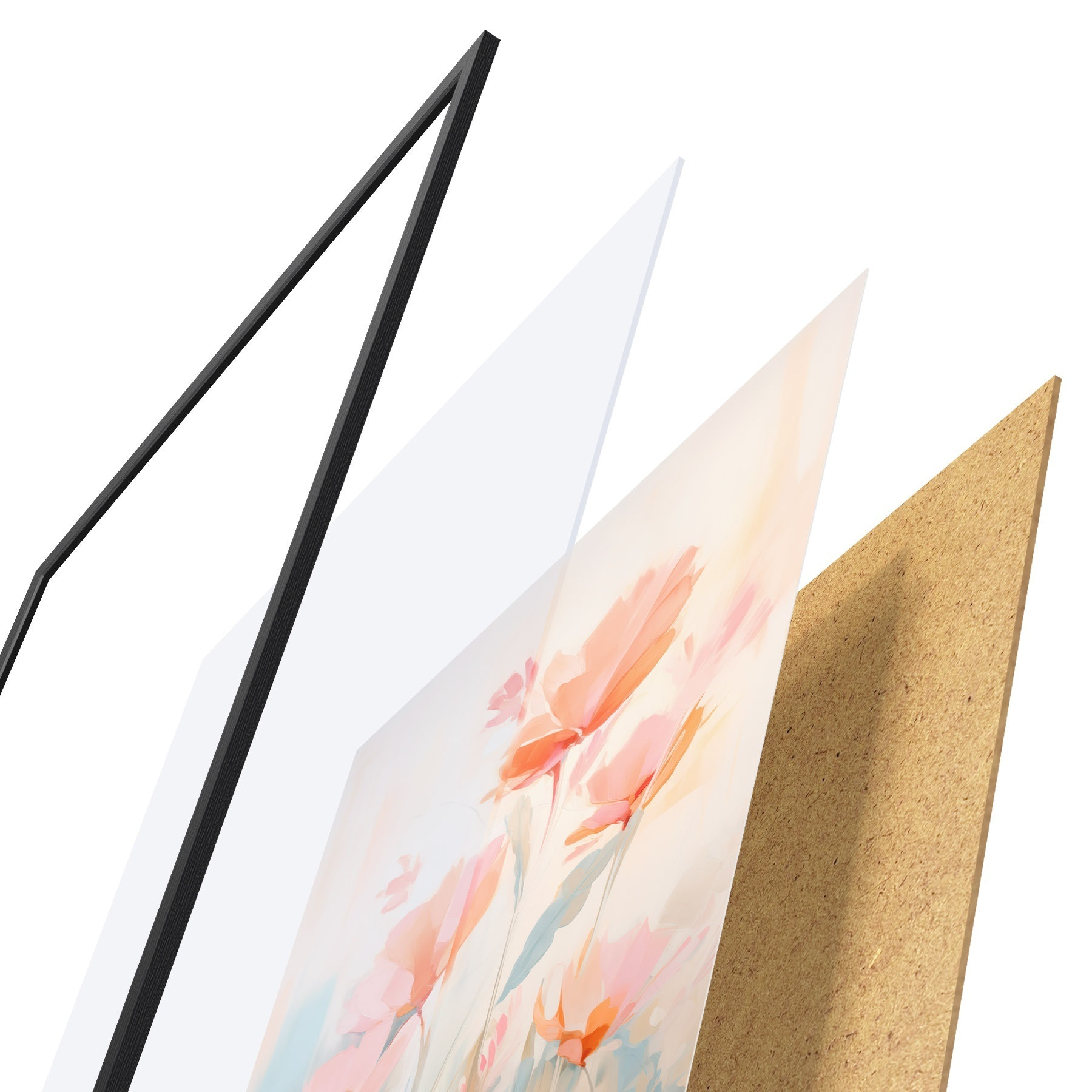 L’affiche encadrée est composée d’un cadre, d’un plexiglas, d’une image imprimée et d’un support en aggloméré. Elle est prête à être accrochée au mur grâce aux fixations situées à l’arrière.