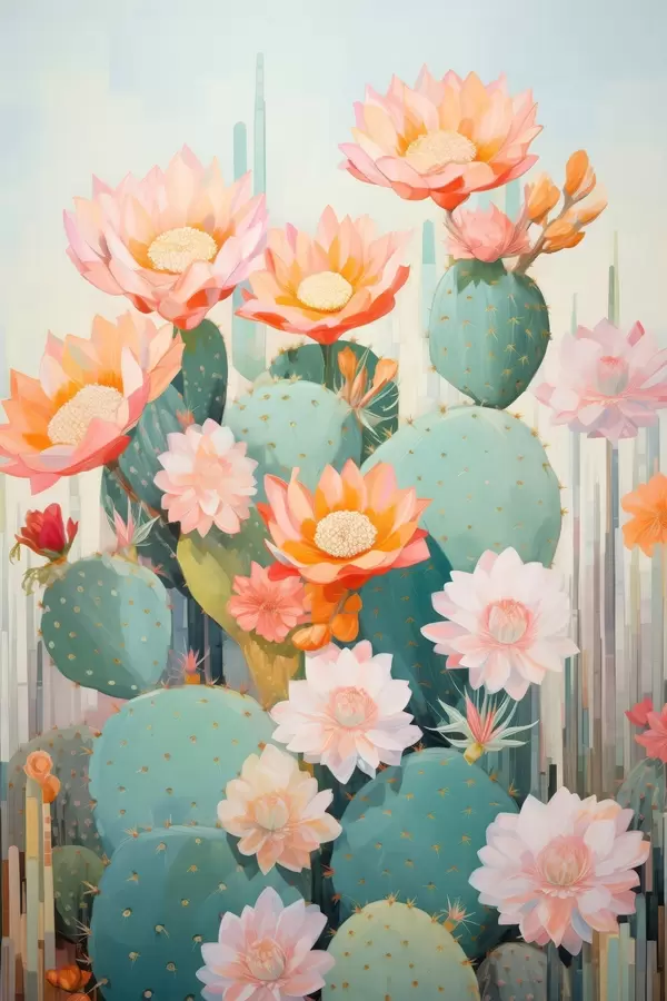 Poster Jardin de fleurs de cactus dans une palette pastel douce, dans un style illustratif Nr f46935