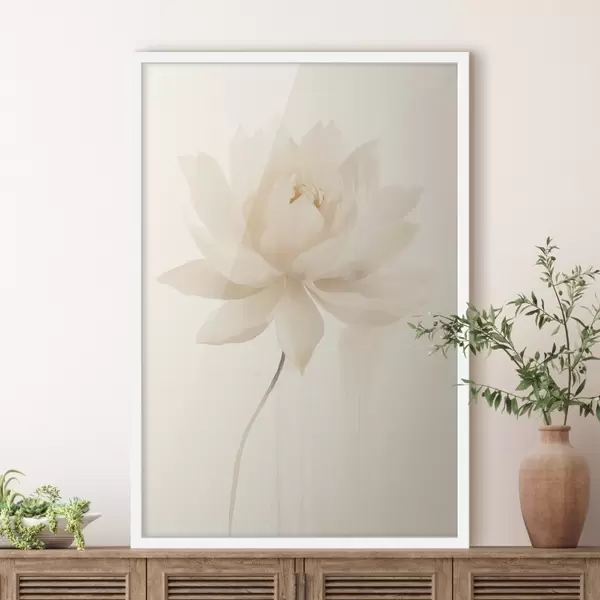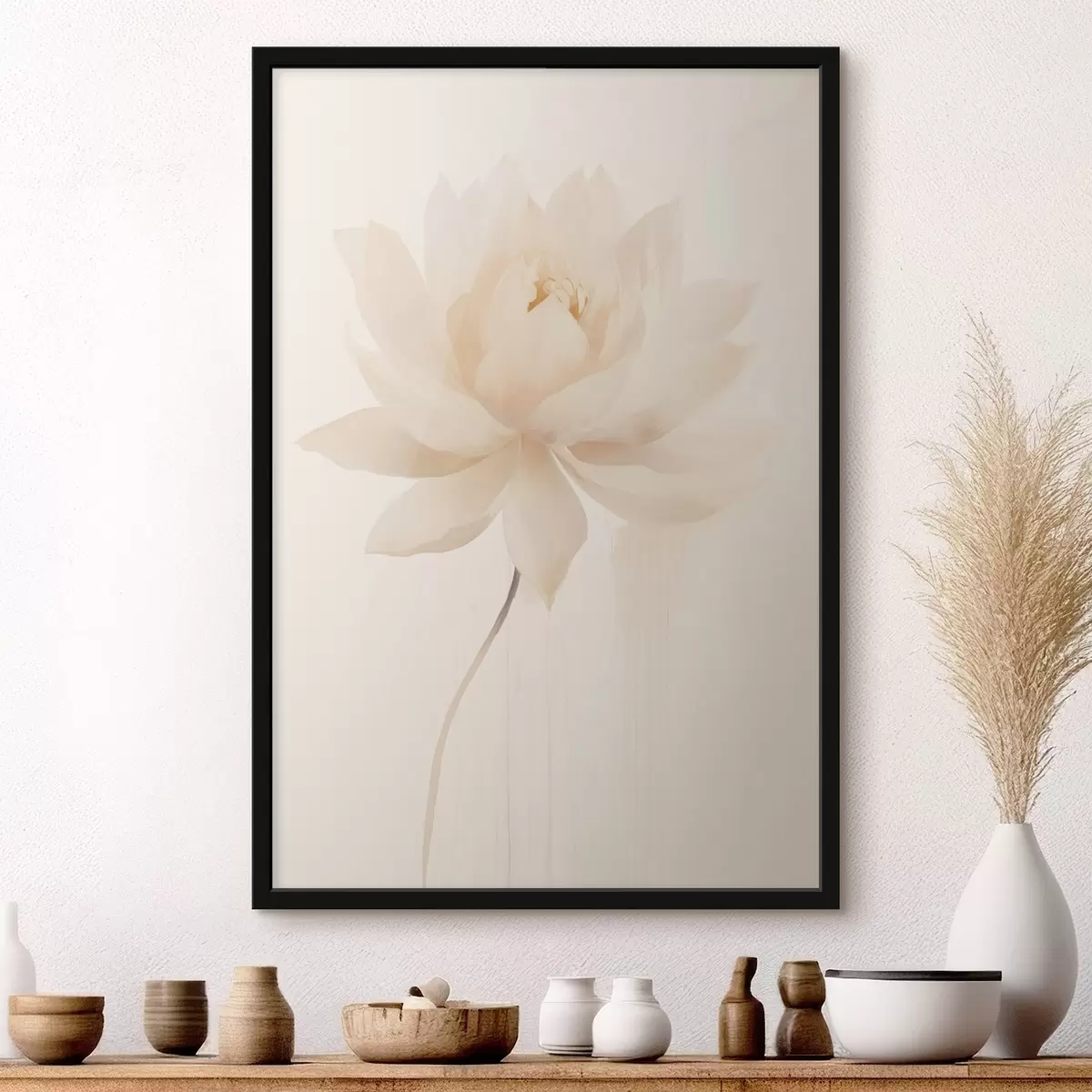 Poster Délicat lotus blanc sur fond clair dans un style minimaliste Nr f46936