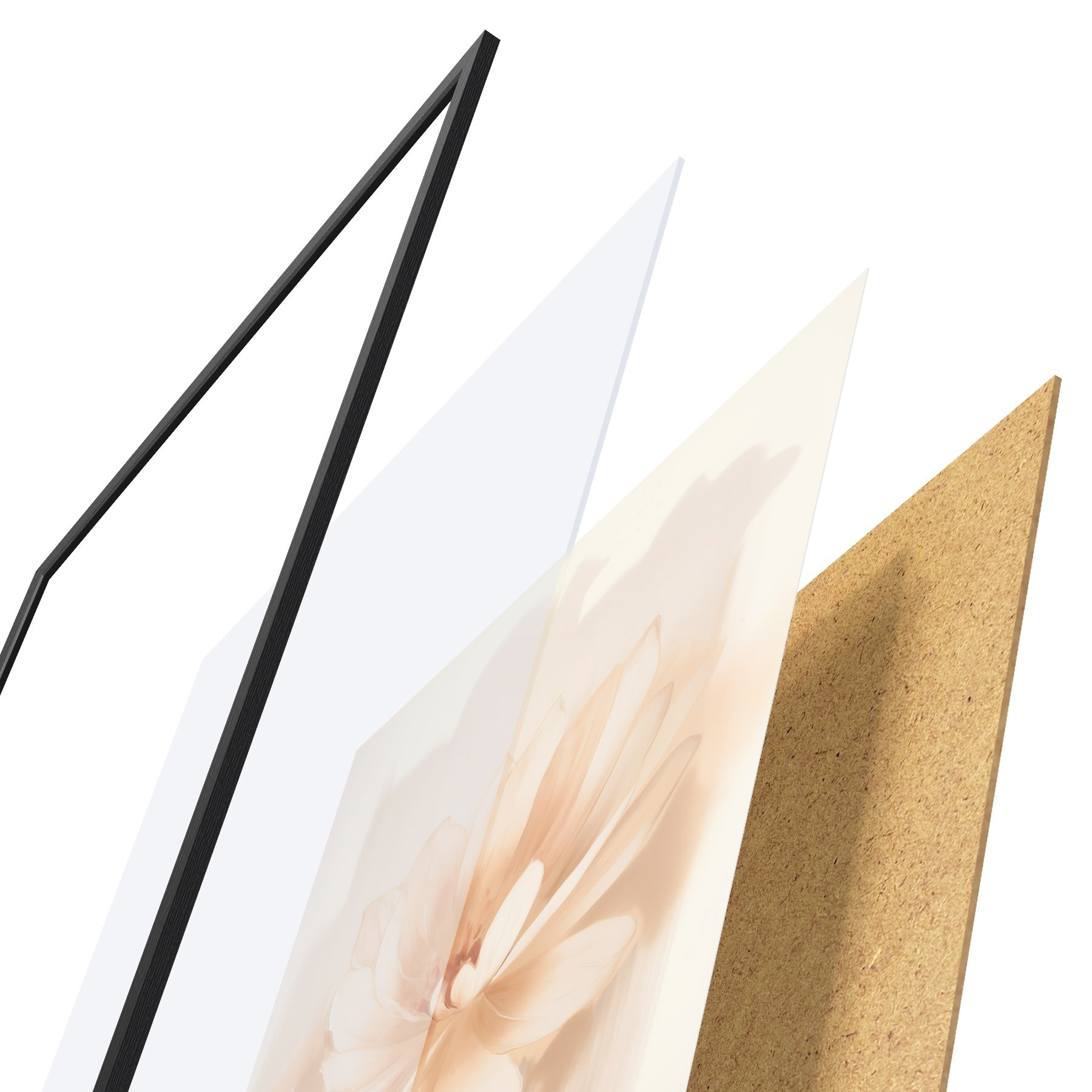 L’affiche encadrée est composée d’un cadre, d’un plexiglas, d’une image imprimée et d’un support en aggloméré. Elle est prête à être accrochée au mur grâce aux fixations situées à l’arrière.
