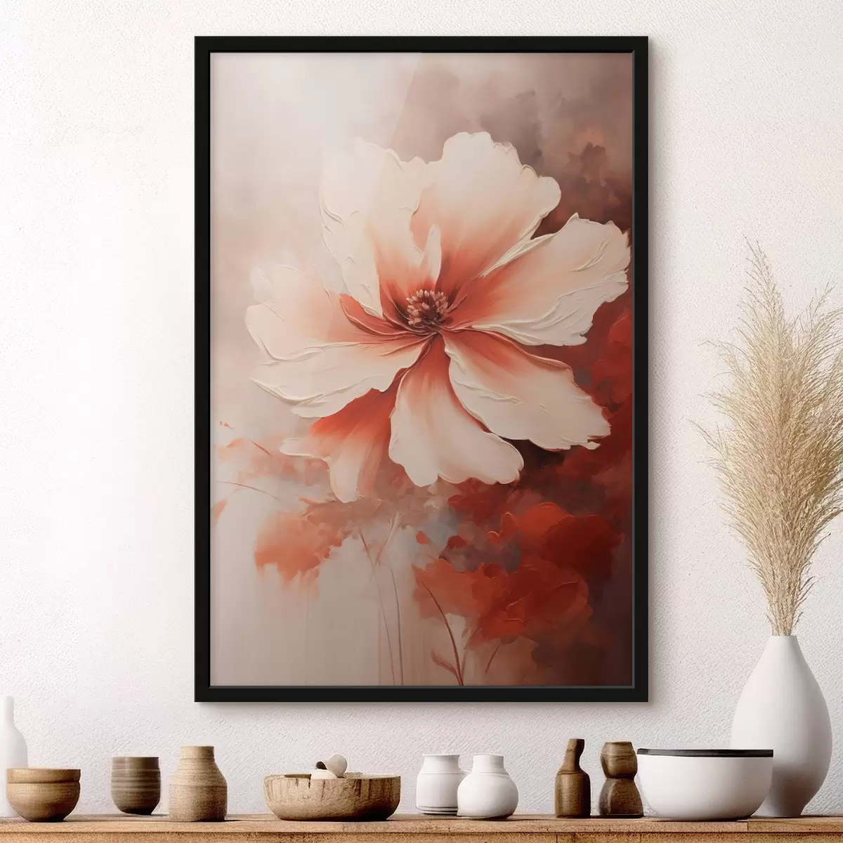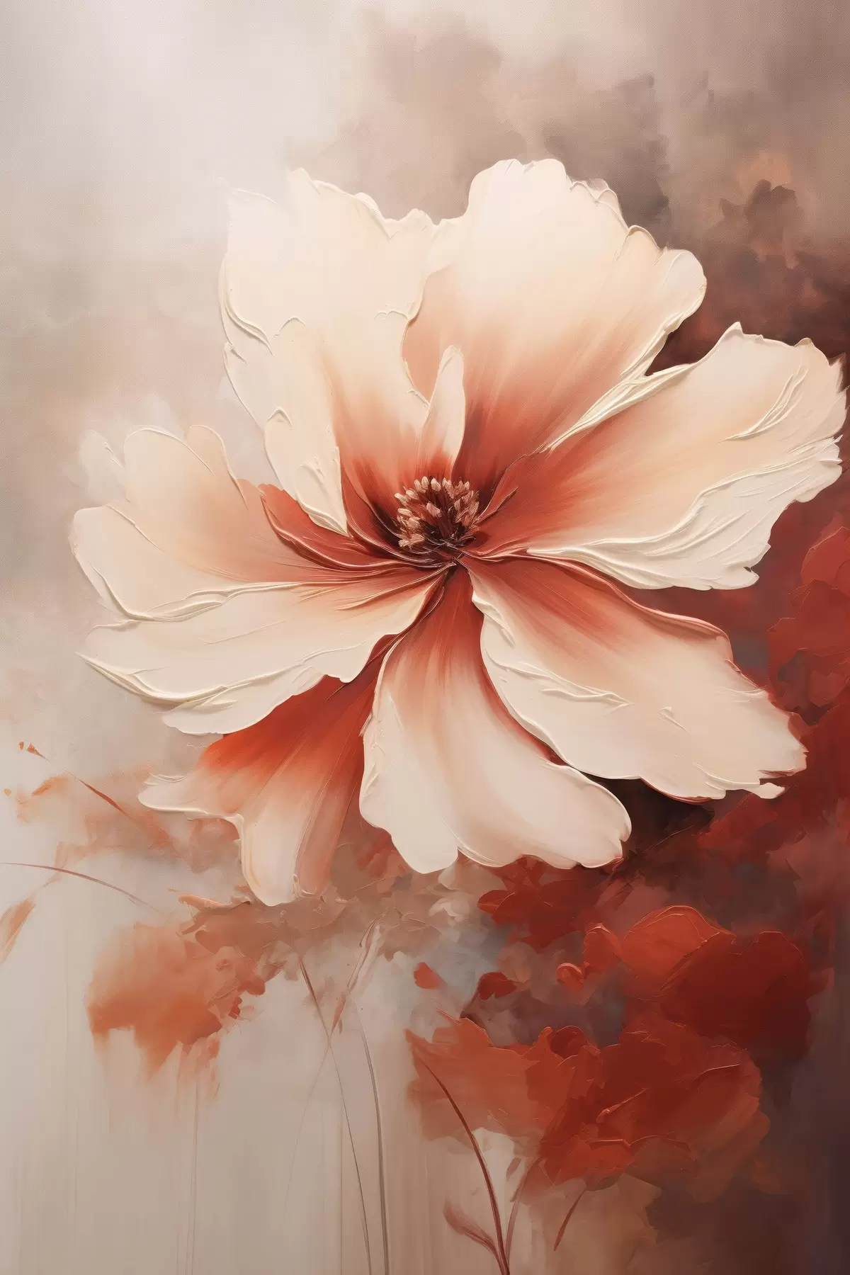 Poster Gros plan d'une fleur de corail blanc sur un fond flou dans un style peinture à l'huile f46939