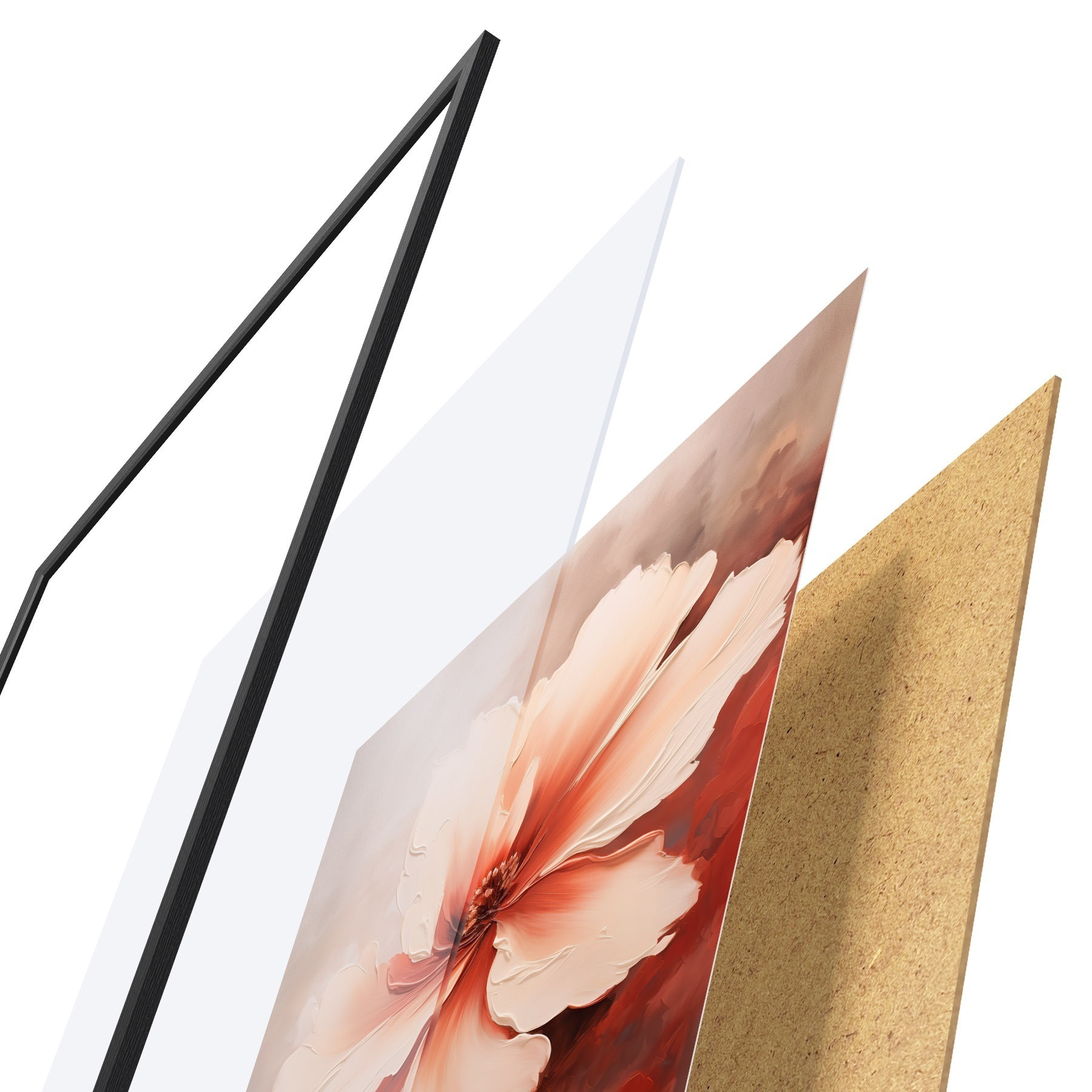 L’affiche encadrée est composée d’un cadre, d’un plexiglas, d’une image imprimée et d’un support en aggloméré. Elle est prête à être accrochée au mur grâce aux fixations situées à l’arrière.