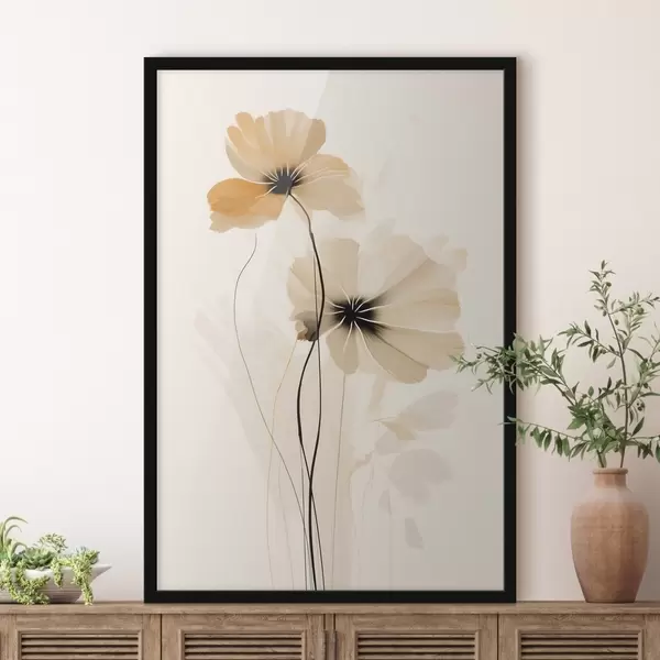 Poster Fleurs dans une palette beige-pêche avec des centres foncés dans un style minimaliste Nr f46945