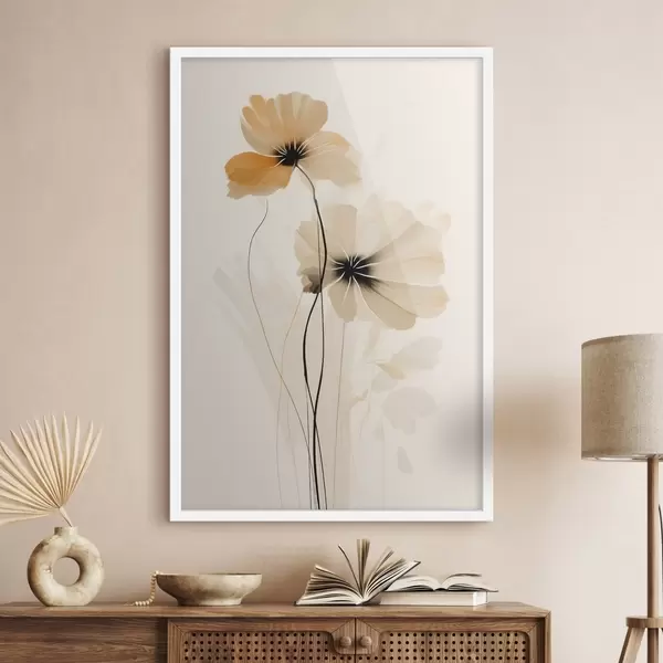 Poster Fleurs dans une palette beige-pêche avec des centres foncés dans un style minimaliste f46945