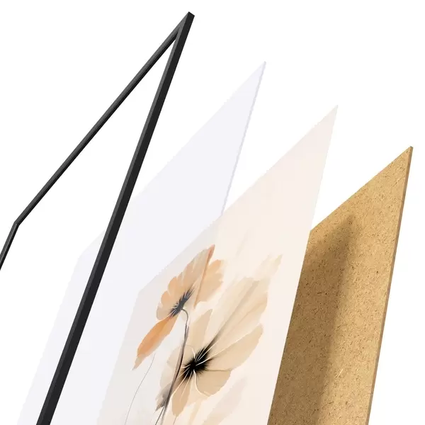 L’affiche encadrée est composée d’un cadre, d’un plexiglas, d’une image imprimée et d’un support en aggloméré. Elle est prête à être accrochée au mur grâce aux fixations situées à l’arrière.