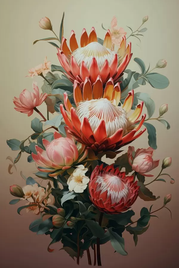 Poster Composition avec de grandes protéas dans un style pictural numérique moderne f46947