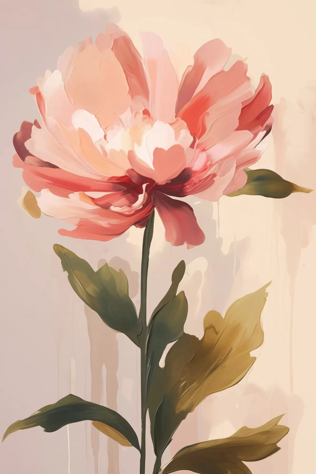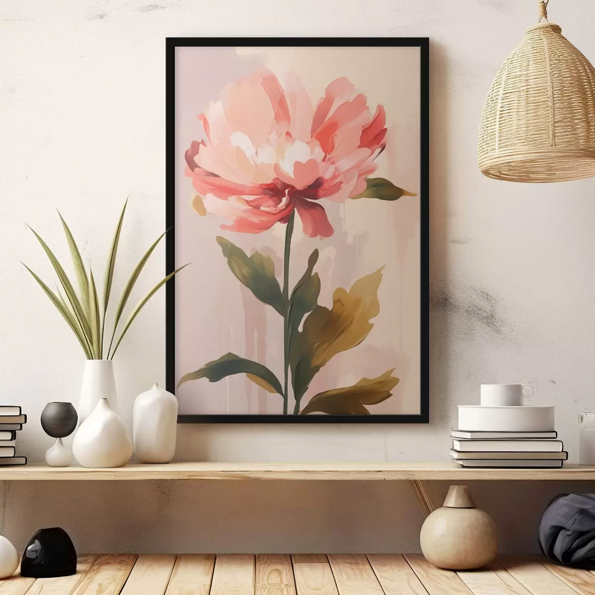 Poster Pivoine aux pétales rose corail dans un style d'illustration moderne Nr f46948