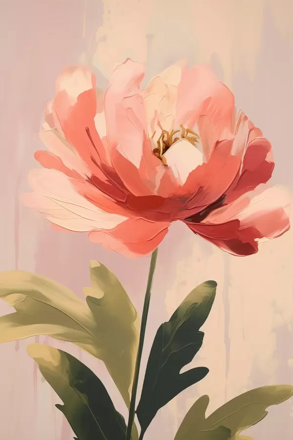 Poster Pivoine corail sur fond pastel dans un style d'illustration artistique moderne f46949