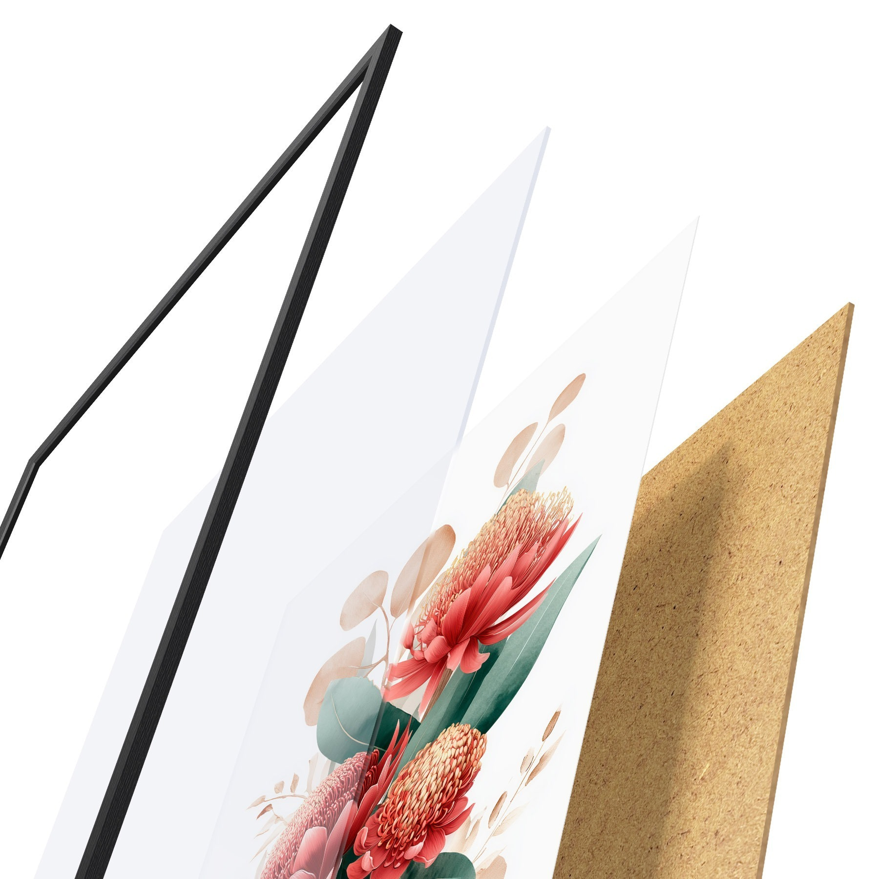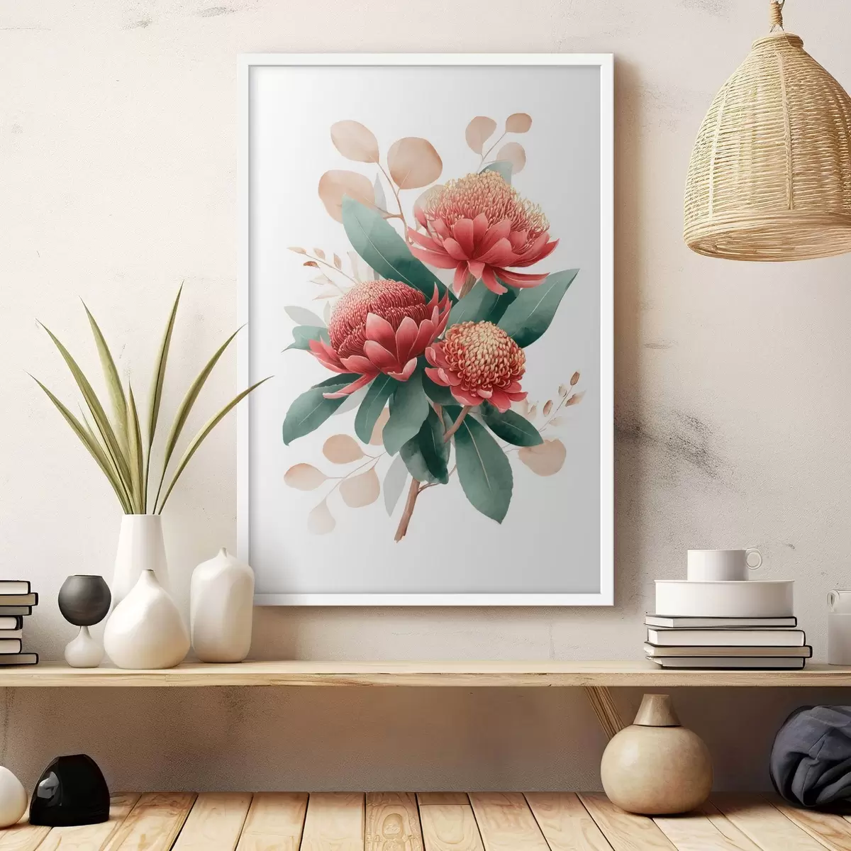 Poster Bouquet expressif composé de protéas et de feuillages décoratifs dans un style illustratif moderne. f46954