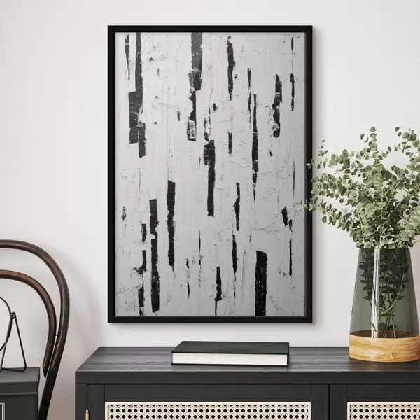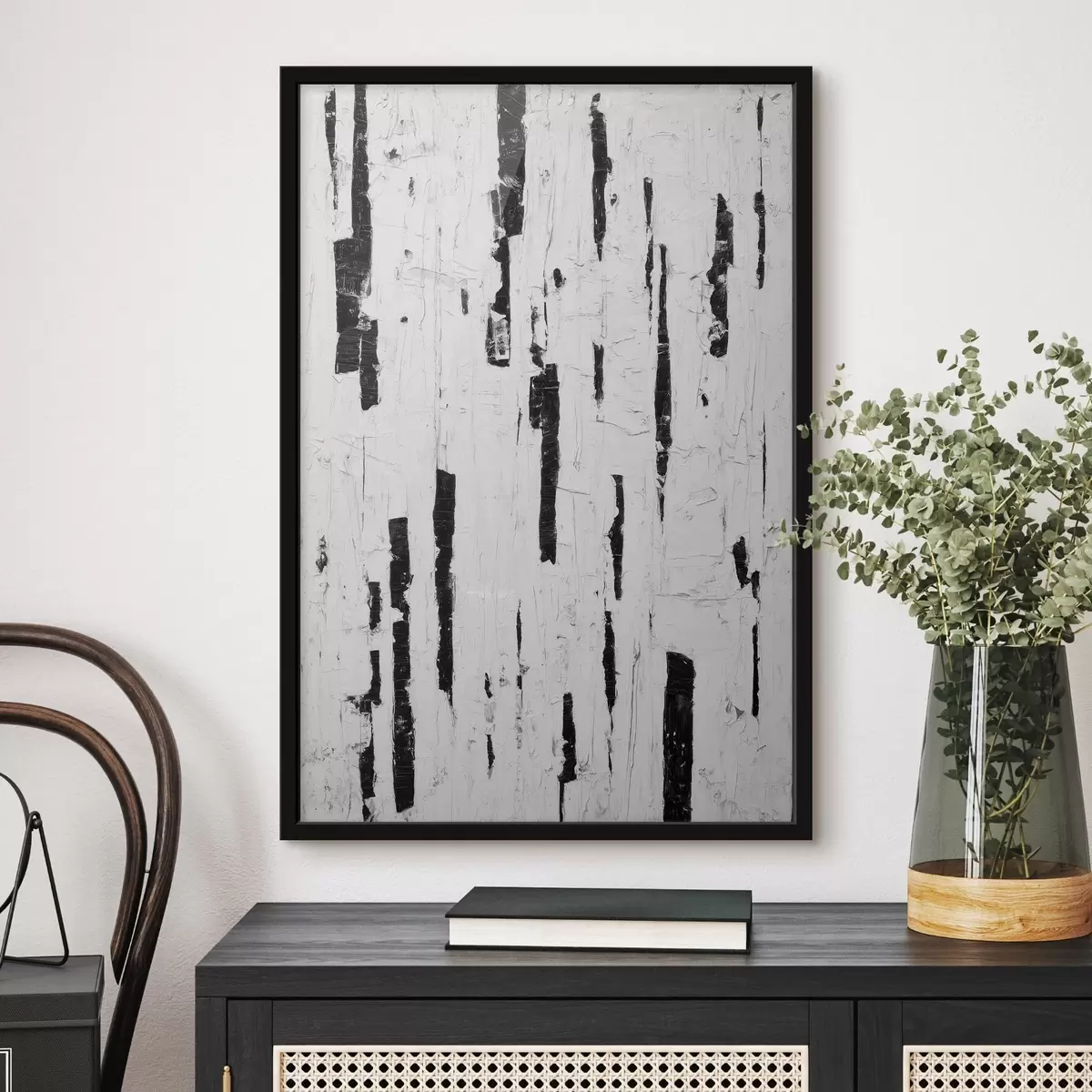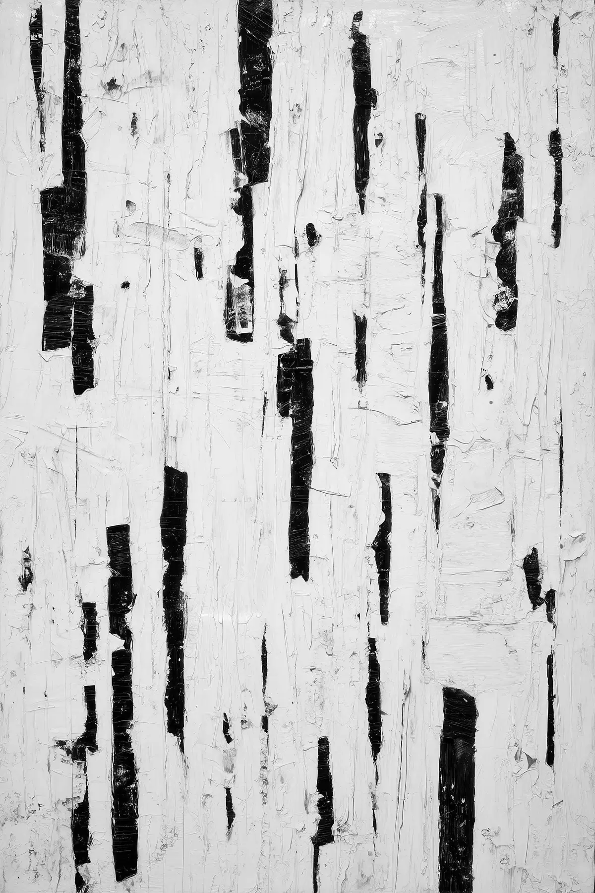 Poster Composition abstraite avec des traits verticaux noirs sur fond blanc, dans un style peinture à l'huile. Nr f46956