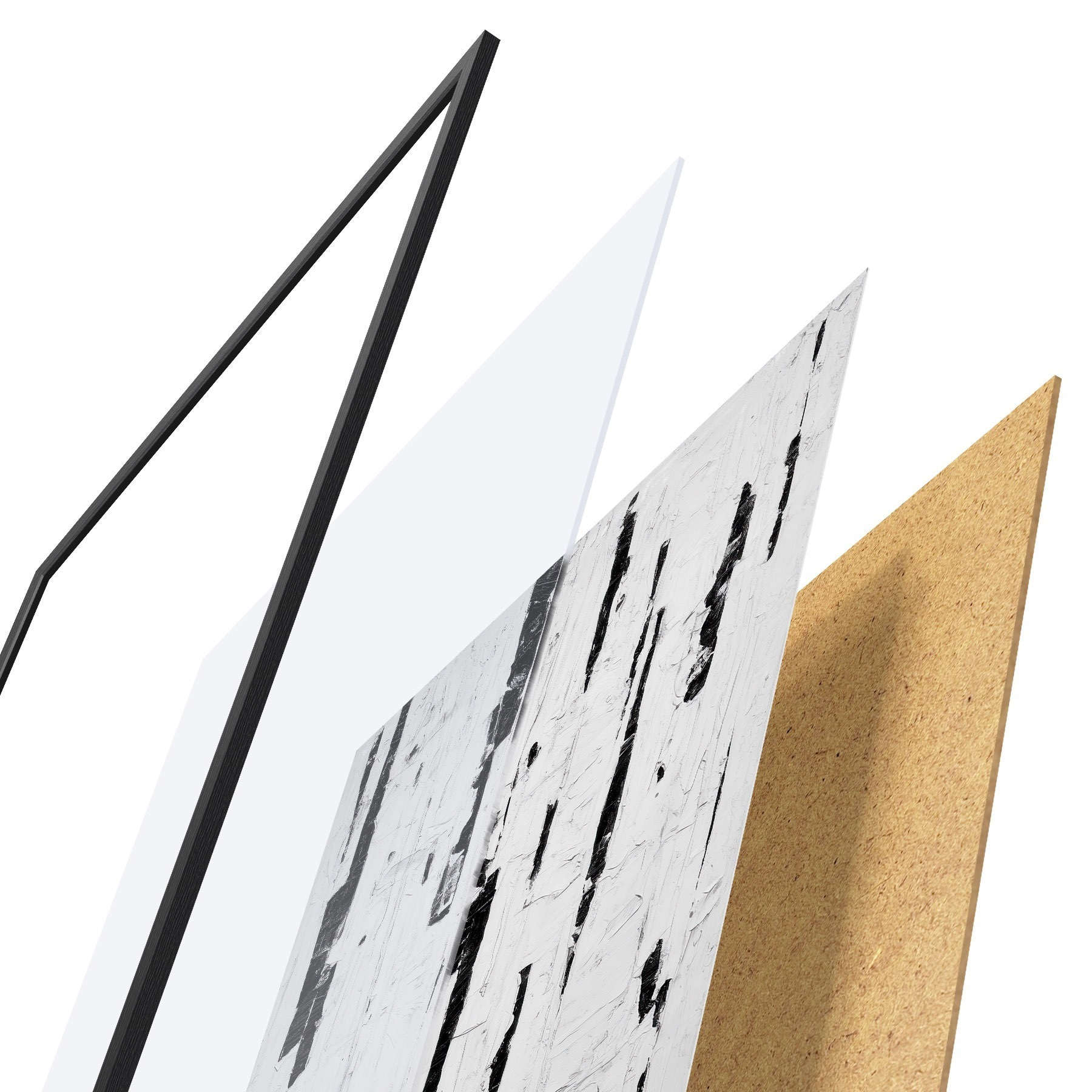 L’affiche encadrée est composée d’un cadre, d’un plexiglas, d’une image imprimée et d’un support en aggloméré. Elle est prête à être accrochée au mur grâce aux fixations situées à l’arrière.
