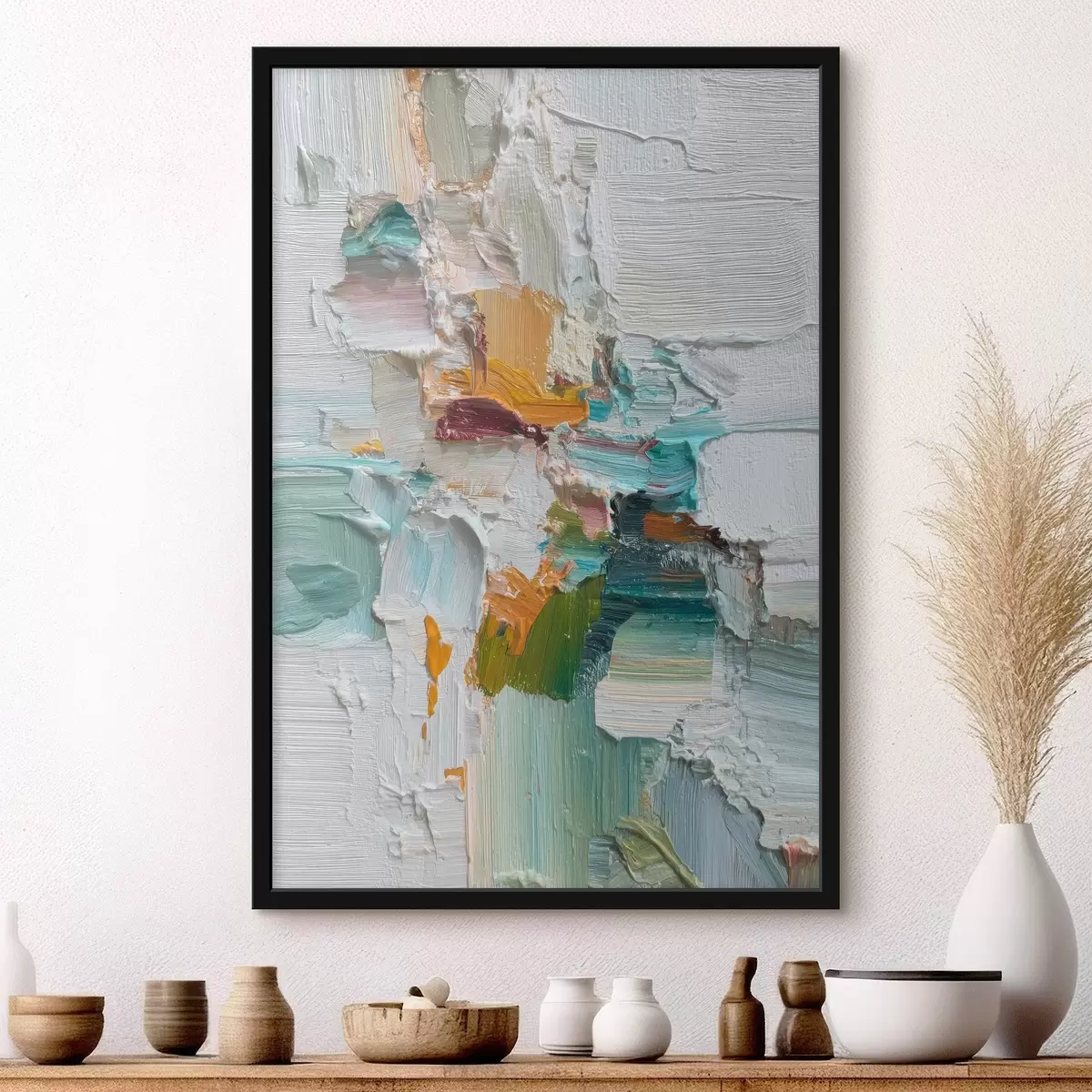 Poster Composition avec des accents turquoise et orange dans un style peinture à l'huile f46958