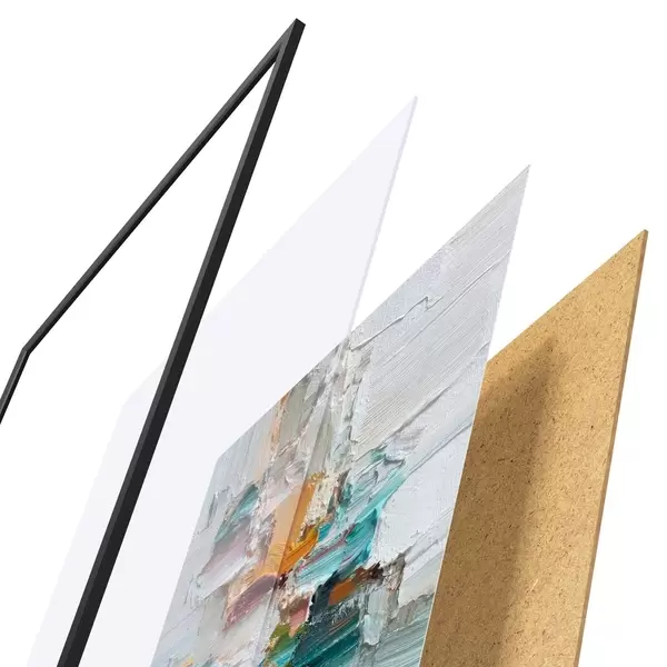 L’affiche encadrée est composée d’un cadre, d’un plexiglas, d’une image imprimée et d’un support en aggloméré. Elle est prête à être accrochée au mur grâce aux fixations situées à l’arrière.