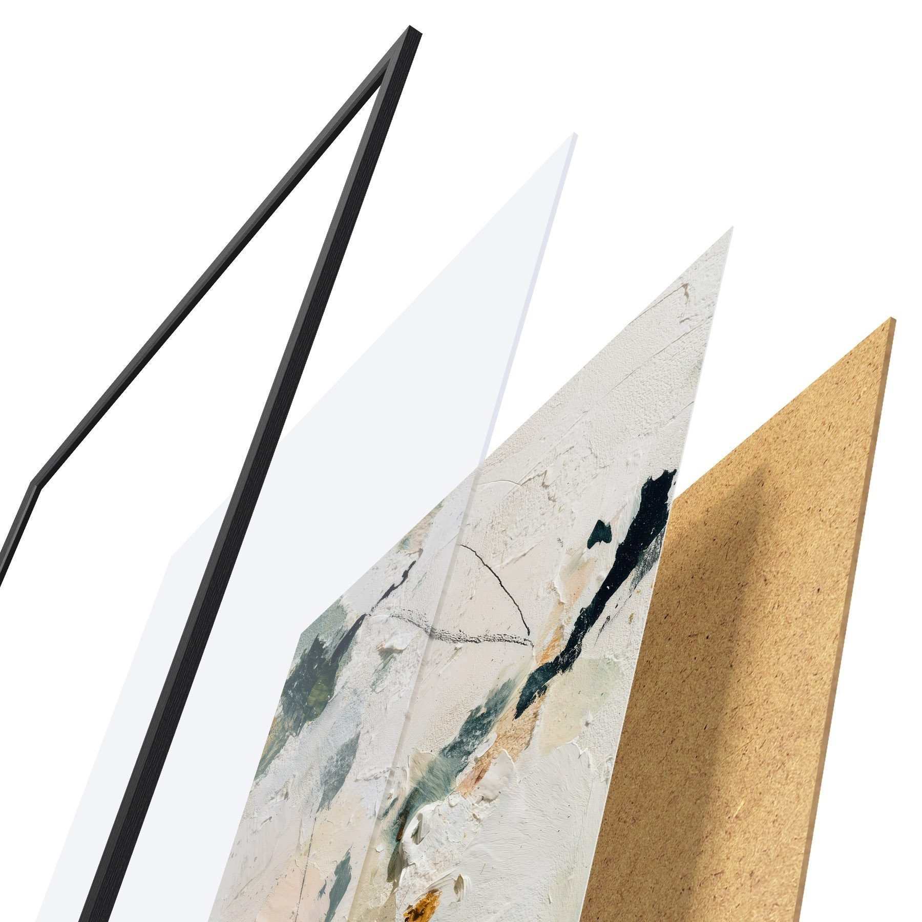L’affiche encadrée est composée d’un cadre, d’un plexiglas, d’une image imprimée et d’un support en aggloméré. Elle est prête à être accrochée au mur grâce aux fixations situées à l’arrière.