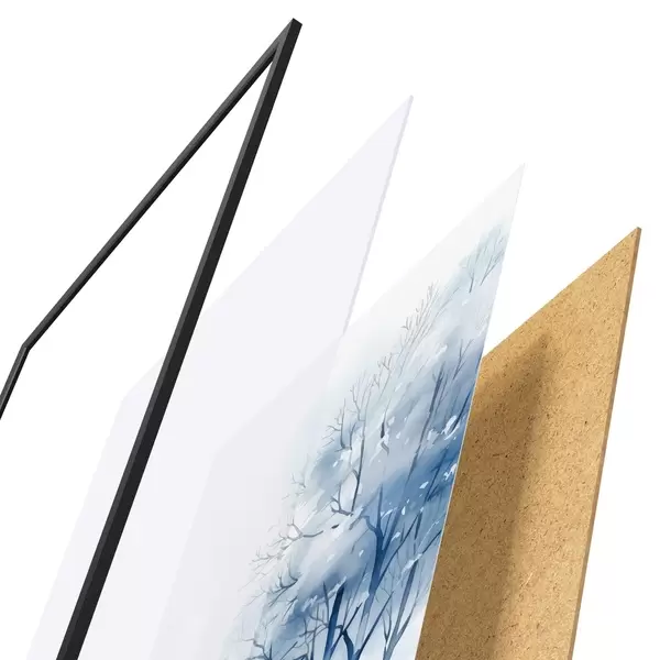 L’affiche encadrée est composée d’un cadre, d’un plexiglas, d’une image imprimée et d’un support en aggloméré. Elle est prête à être accrochée au mur grâce aux fixations situées à l’arrière.