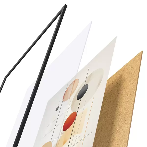 L’affiche encadrée est composée d’un cadre, d’un plexiglas, d’une image imprimée et d’un support en aggloméré. Elle est prête à être accrochée au mur grâce aux fixations situées à l’arrière.