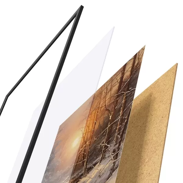 L’affiche encadrée est composée d’un cadre, d’un plexiglas, d’une image imprimée et d’un support en aggloméré. Elle est prête à être accrochée au mur grâce aux fixations situées à l’arrière.