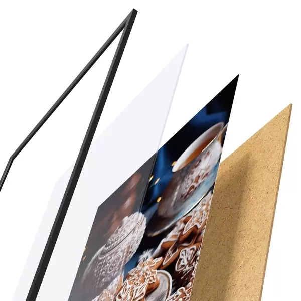 L’affiche encadrée est composée d’un cadre, d’un plexiglas, d’une image imprimée et d’un support en aggloméré. Elle est prête à être accrochée au mur grâce aux fixations situées à l’arrière.