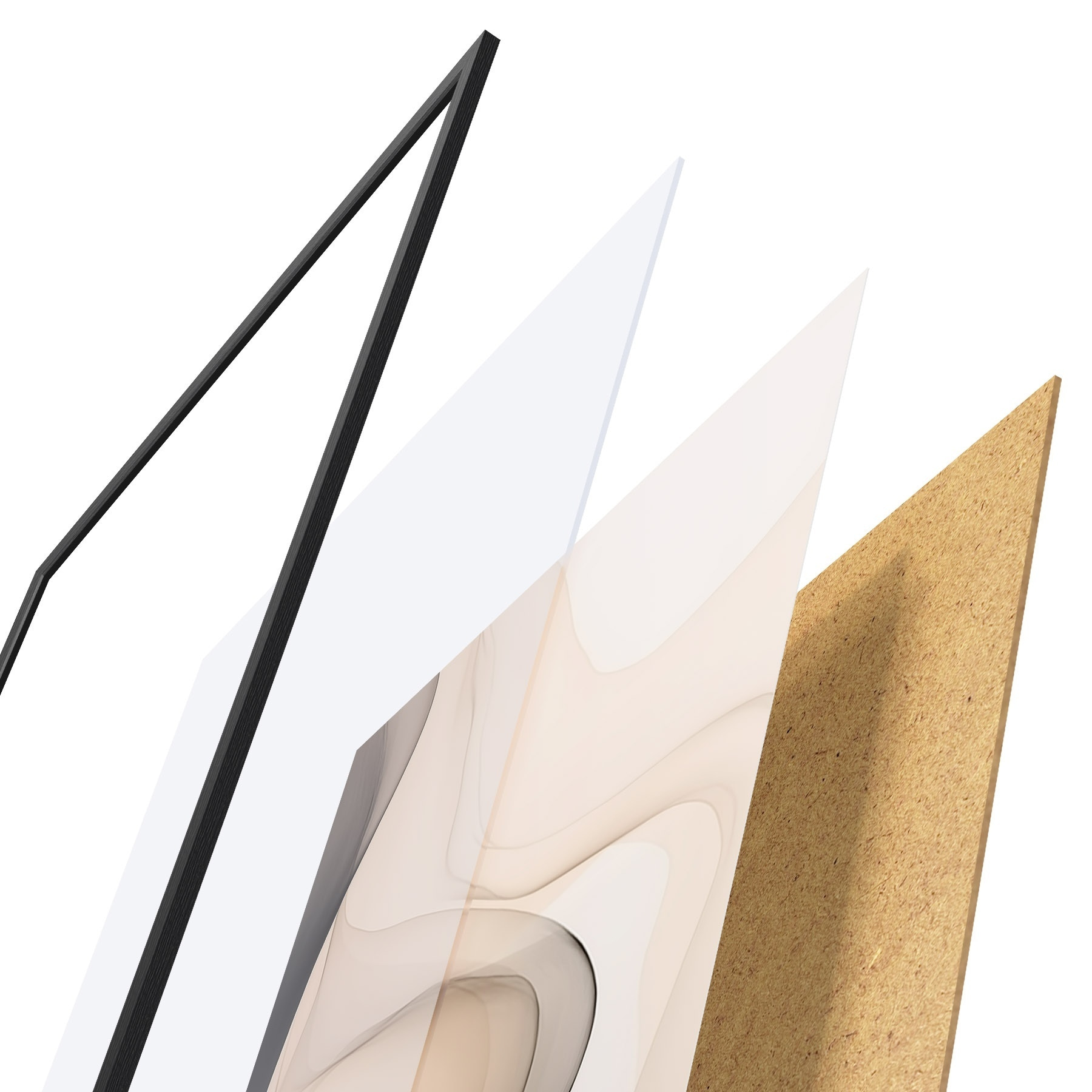 L’affiche encadrée est composée d’un cadre, d’un plexiglas, d’une image imprimée et d’un support en aggloméré. Elle est prête à être accrochée au mur grâce aux fixations situées à l’arrière.