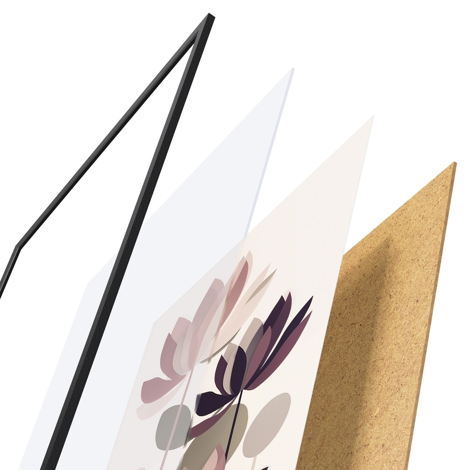 L’affiche encadrée est composée d’un cadre, d’un plexiglas, d’une image imprimée et d’un support en aggloméré. Elle est prête à être accrochée au mur grâce aux fixations situées à l’arrière.