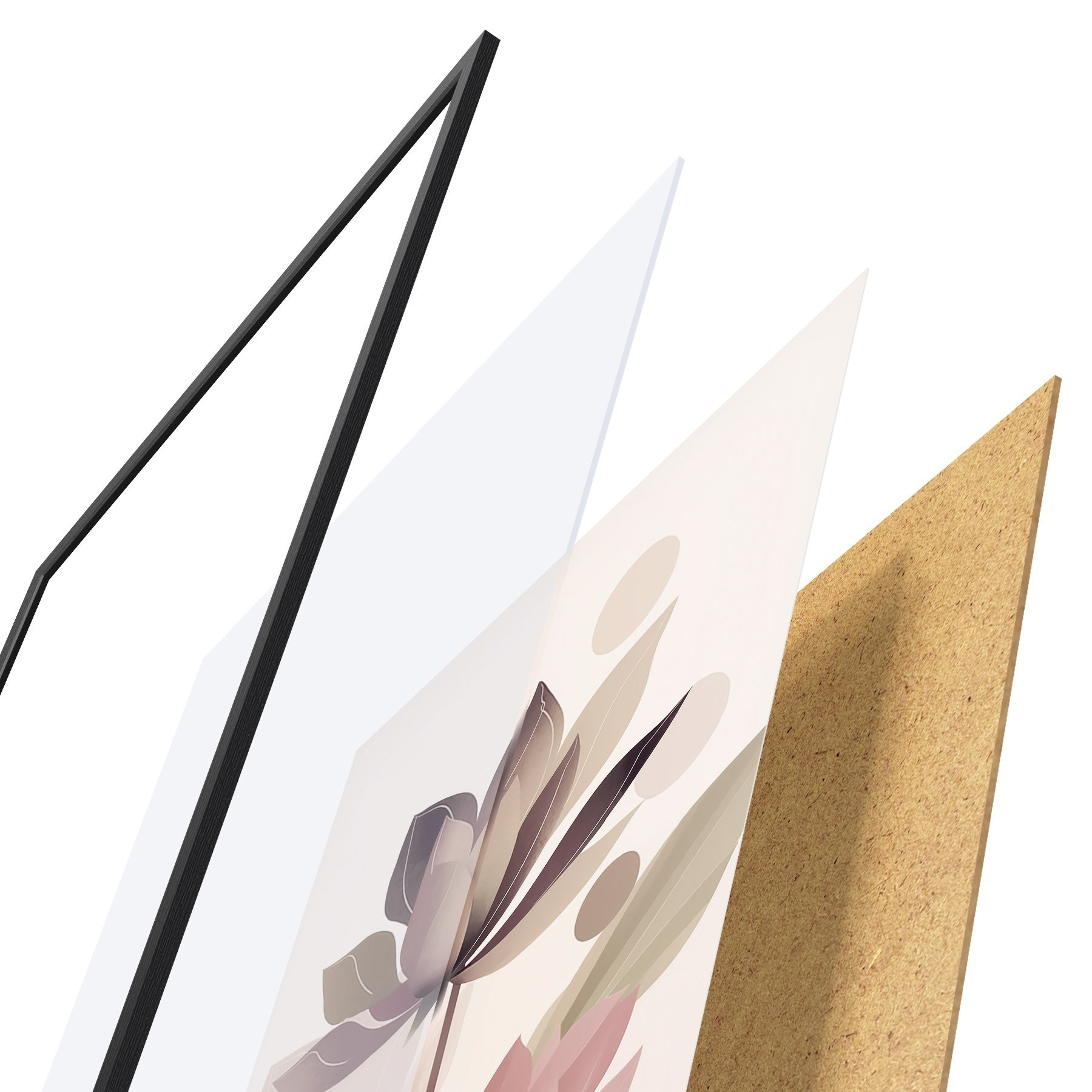 L’affiche encadrée est composée d’un cadre, d’un plexiglas, d’une image imprimée et d’un support en aggloméré. Elle est prête à être accrochée au mur grâce aux fixations situées à l’arrière.