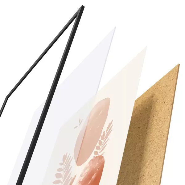 L’affiche encadrée est composée d’un cadre, d’un plexiglas, d’une image imprimée et d’un support en aggloméré. Elle est prête à être accrochée au mur grâce aux fixations situées à l’arrière.